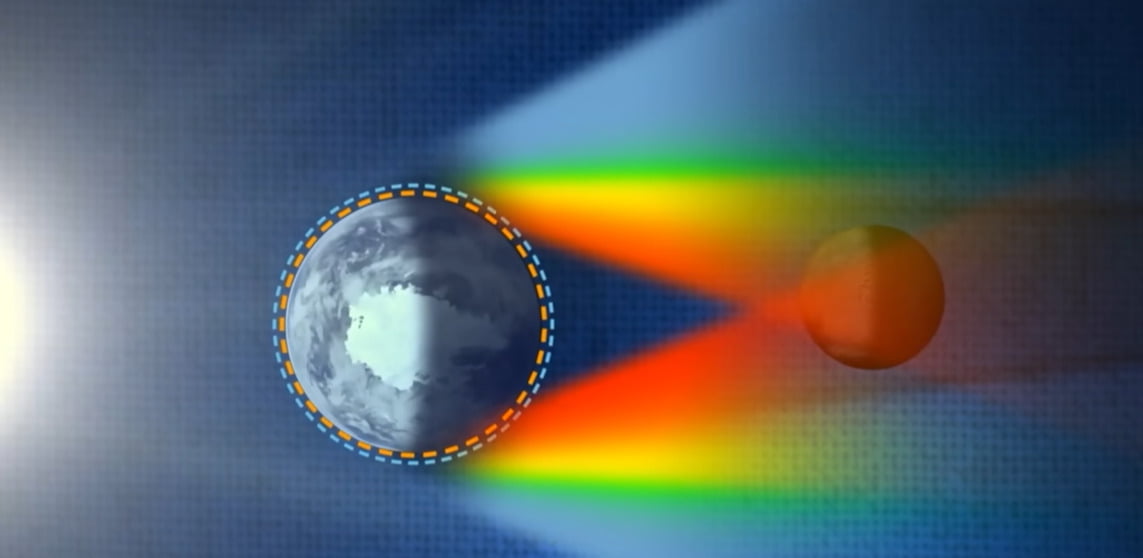Atmospheric Refraction: You might expect the Moon to go dark in Earth’s shadow - but instead, it glows red. Here’s why:Sunlight passes through Earth’s atmosphere. Shorter-wavelength light (blue and violet) scatters in all directions (this is why our sky is blue during the day). Longer-wavelength light (red and orange) bends (refracts) around Earth and reaches the Moon’s surface. This filtered, reddish light illuminates the Moon, creating the "blood" effect.