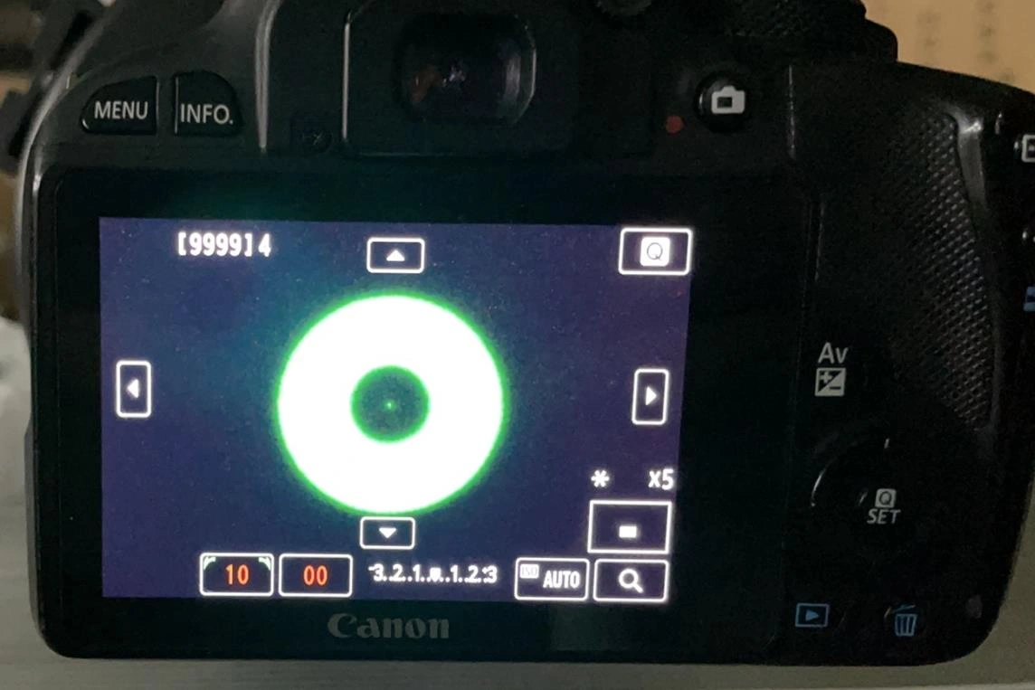 Action: Replace the eyepiece with the camera. Utilize the camera's "Live View" function and activate digital zoom (5x or 10x).