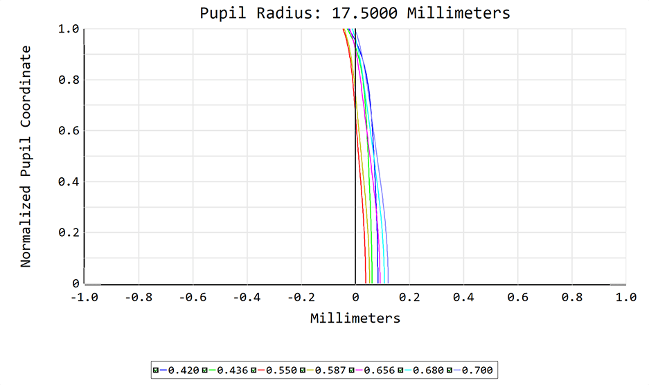 - Each line represents a different wavelength of light. The flatter the curve and the closer the lines of different colors are, the better the chromatic aberration is controlled.
