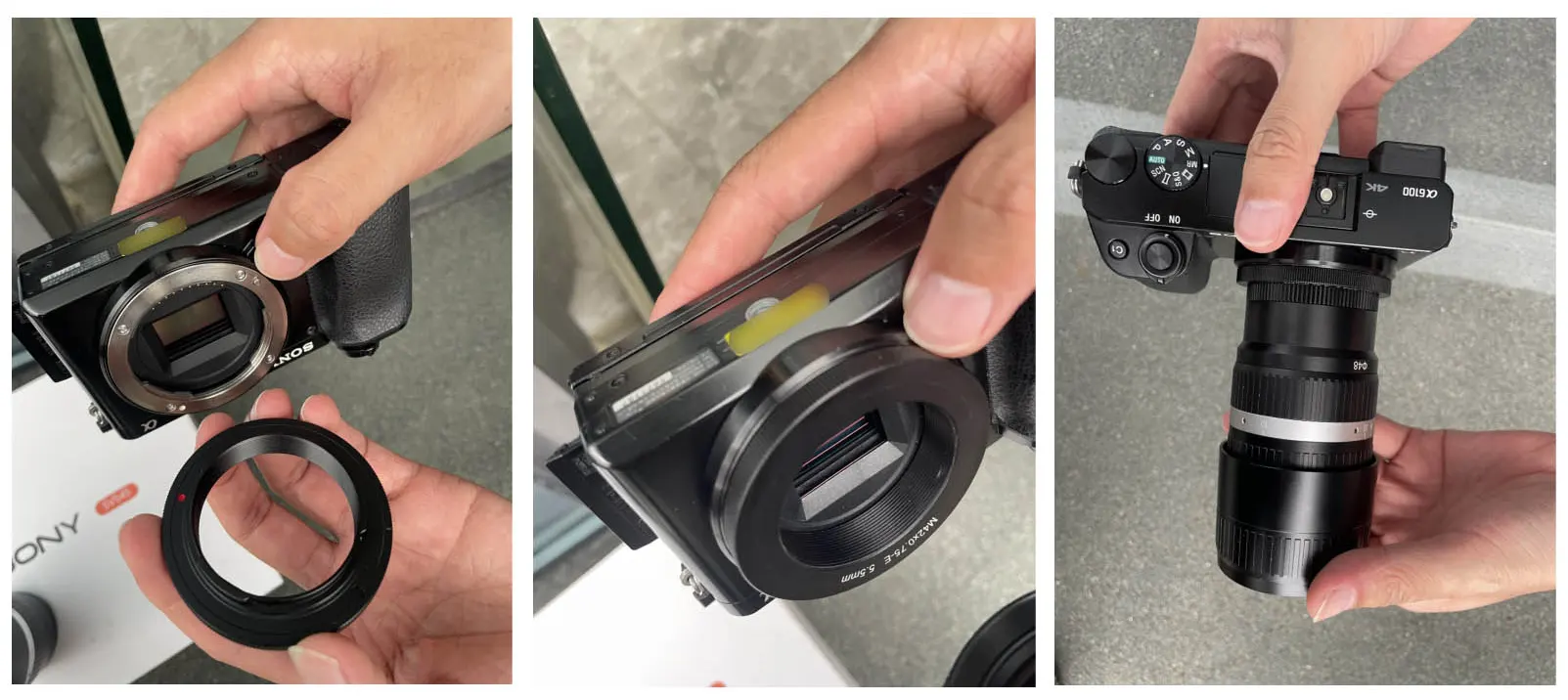 - Connection to a Sony mirrorless camera: Direct compatibility is possible by combining the 5.5mm Sony E-mount adapter ring included as standard with the Sony E-mount system's specific 18.5mm flange focal length.