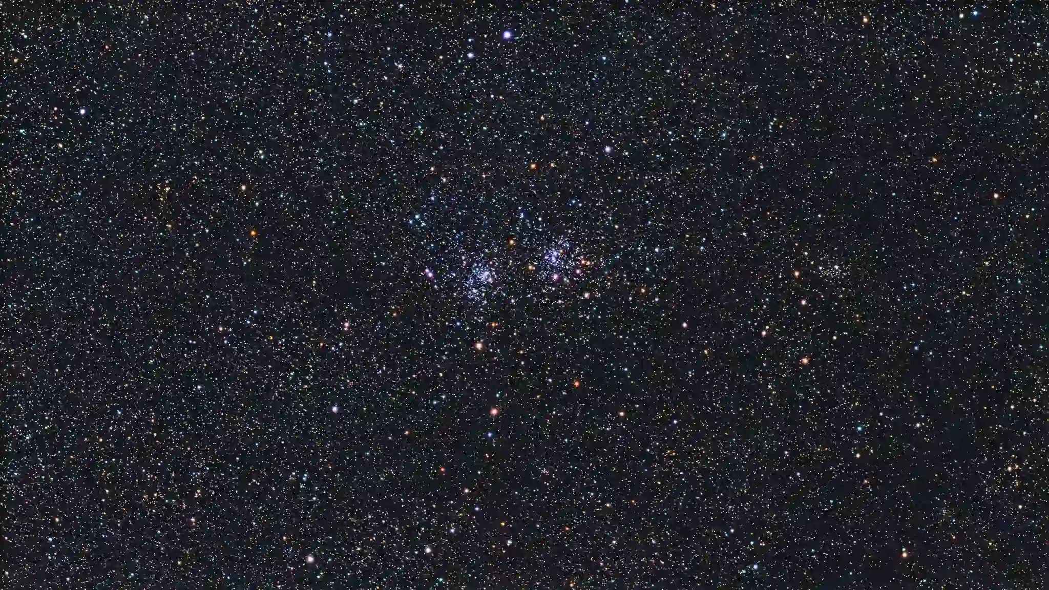 Cassiopeia's Double Star Cluster hχ - Hiroaki Waki | Cassiopeia's Double Star Cluster hχ | SV535+ASI585MCP+UV/IRcut | Gain 252, -5℃, 30 seconds x 5 shots + 60 seconds x 14 shots (16.5 minutes) | Processing: PixInsight, Luminar 4
