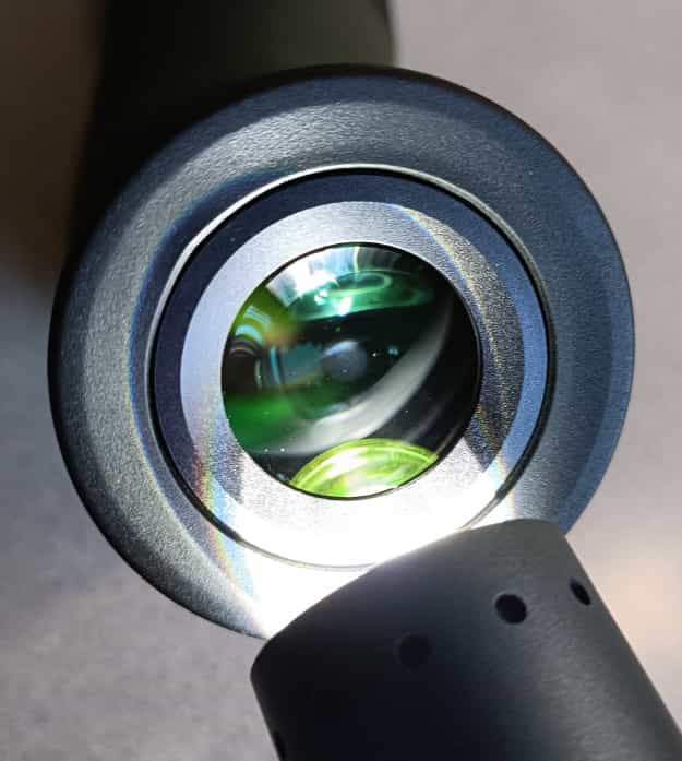 The optics on the scope look very good too, the large 85mm objective lens shows nicely applied coatings and upon looking into the scope itself with a torch, there is no internal reflection issues and it looks very well coated inside to prevent this. The objective lens on Svbony's website states it is ''4 pieces/3 group'' – which I presumes means 2 ED lenses and 1 APO.