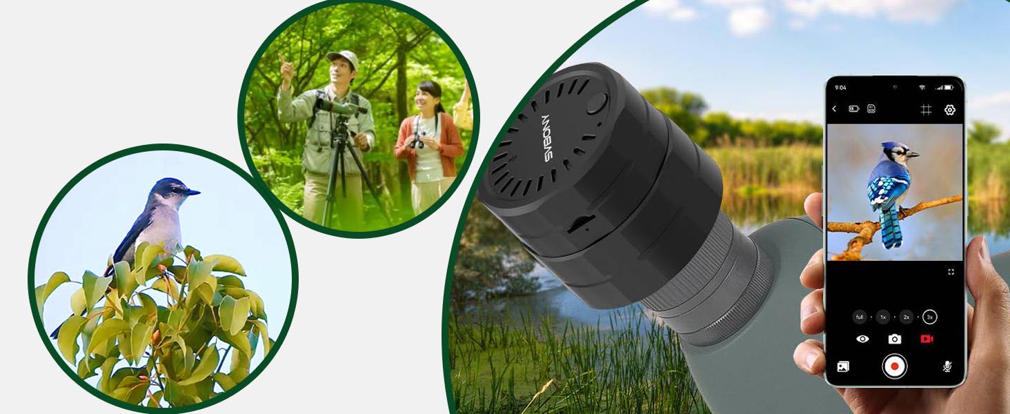 The SC002 WIFI digiscope camera is a smart camera designed for outdoor birdwatching and exploration. Simply connect the SC002 wifi camera to your outdoor scope and use your smartphone to take photos from a distance. This digital camera suitable for various scenarios such as birdwatching, outdoor adventures, environmental science education, and family outings.