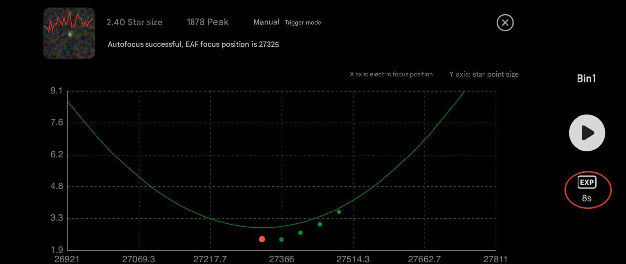 3 Start EAF, set the exposure to 8S, click to start EAF