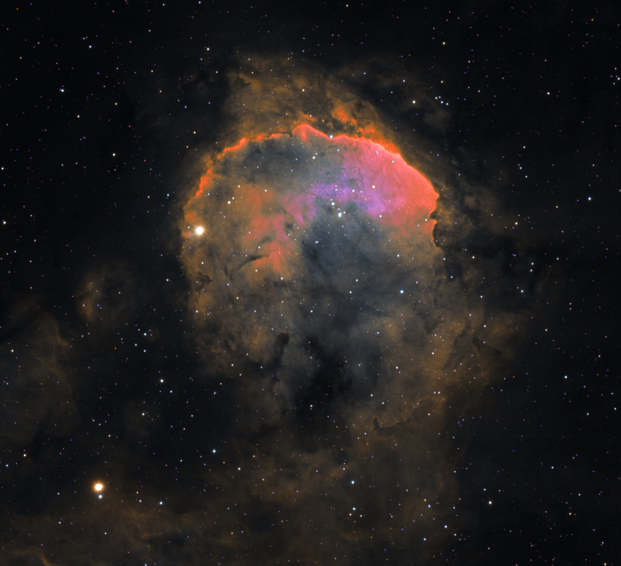 taken with a SV503 102mm scope Svbony HA OII and SII filters camera Player one Artemis Mpro 47mp subs 173 x 120sec per chanel and calbration frames caputeered with NINA and processwed in Siril