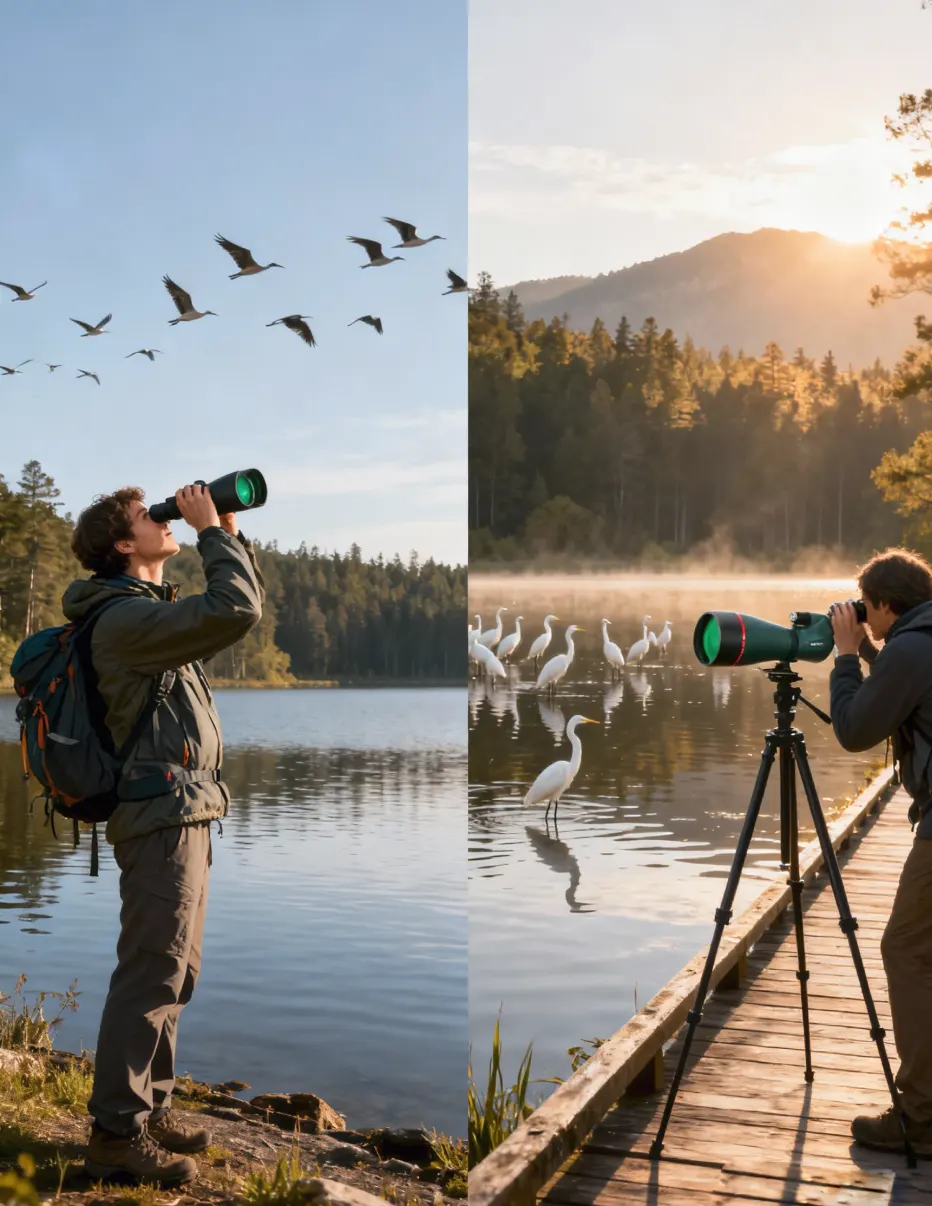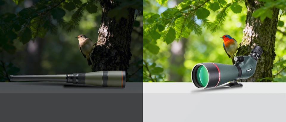 Straight: Intuitive, track flying birds Angled: Comfortable, extended use