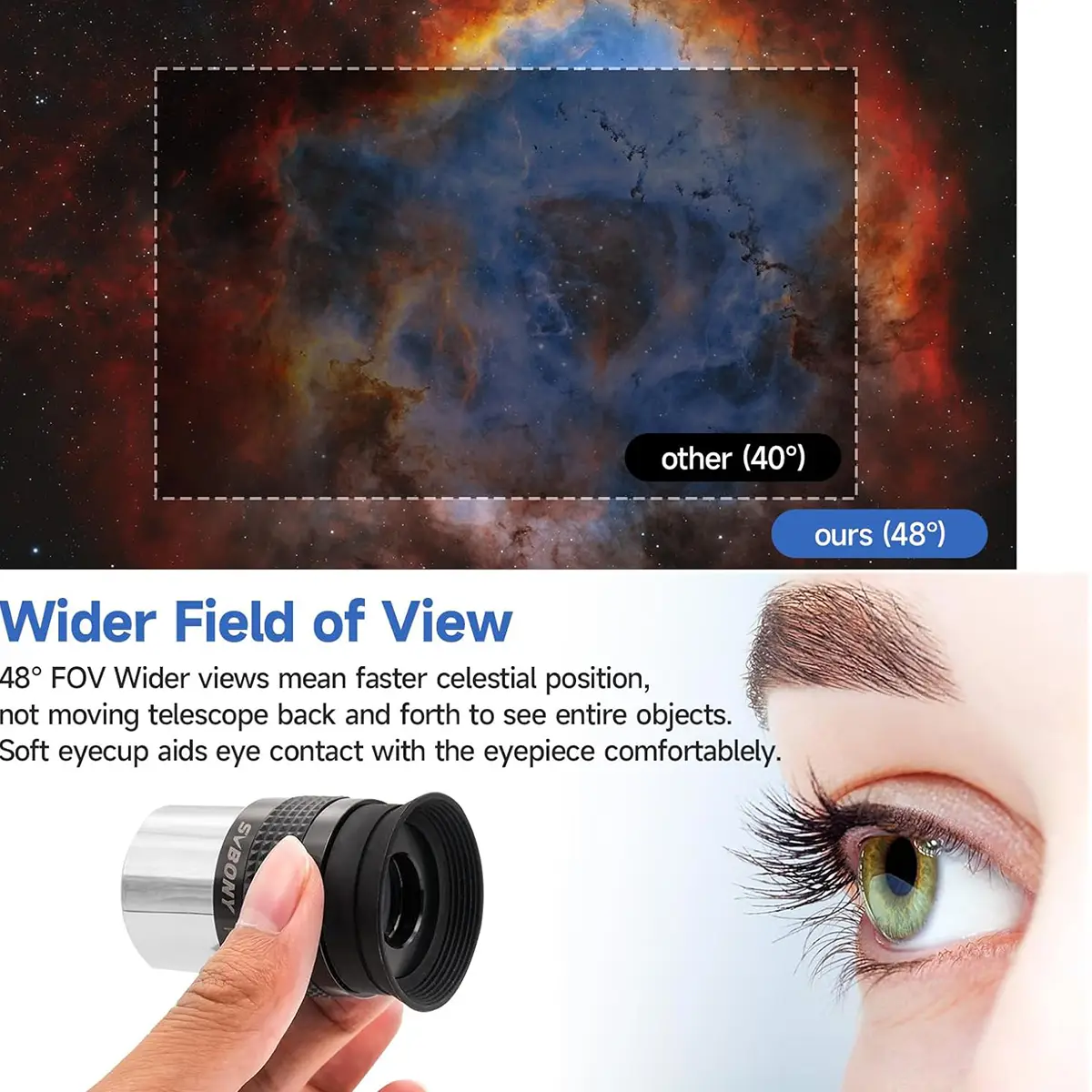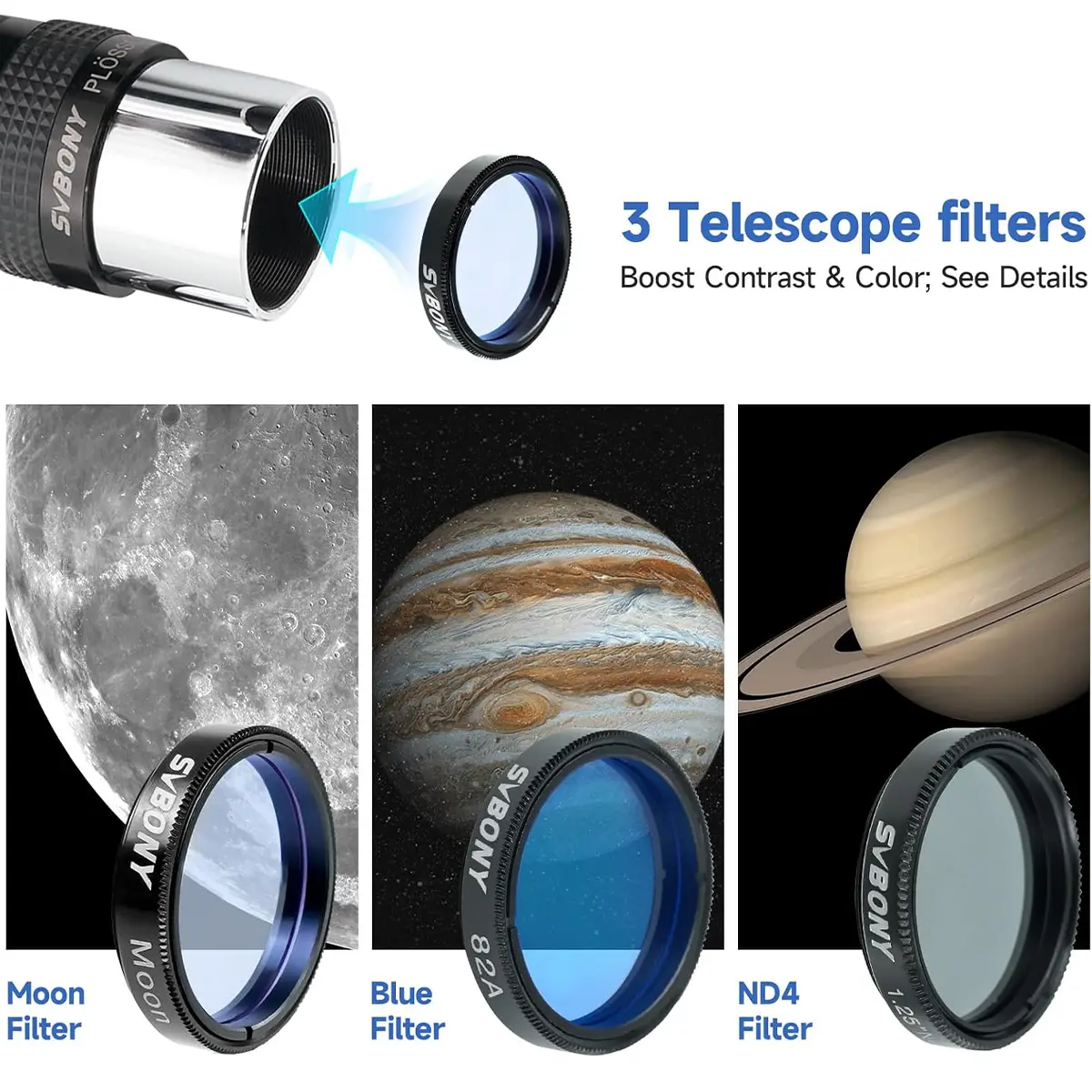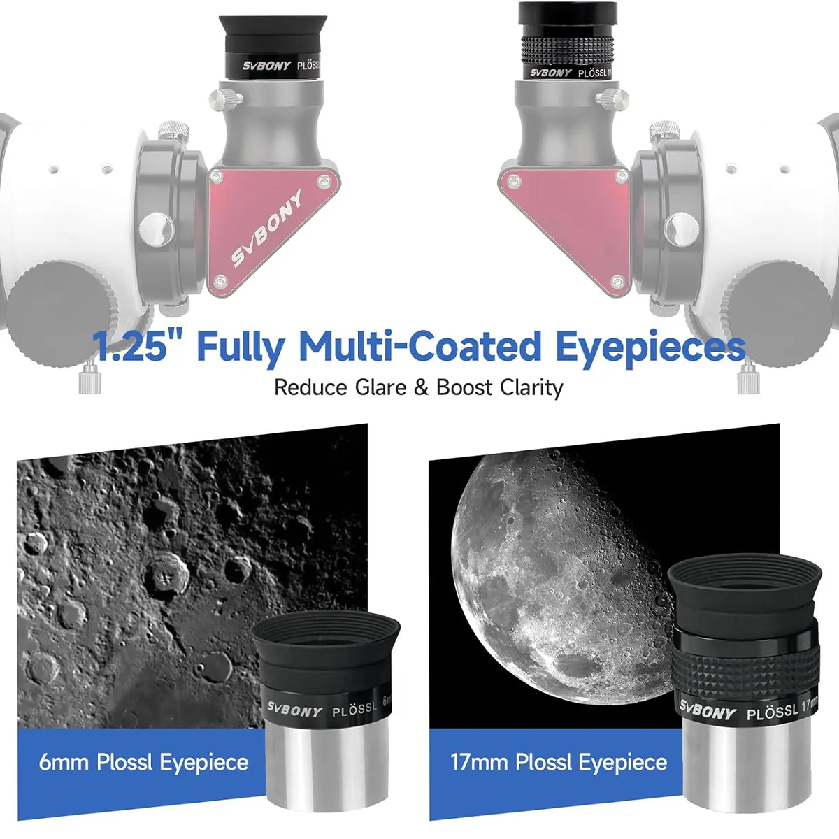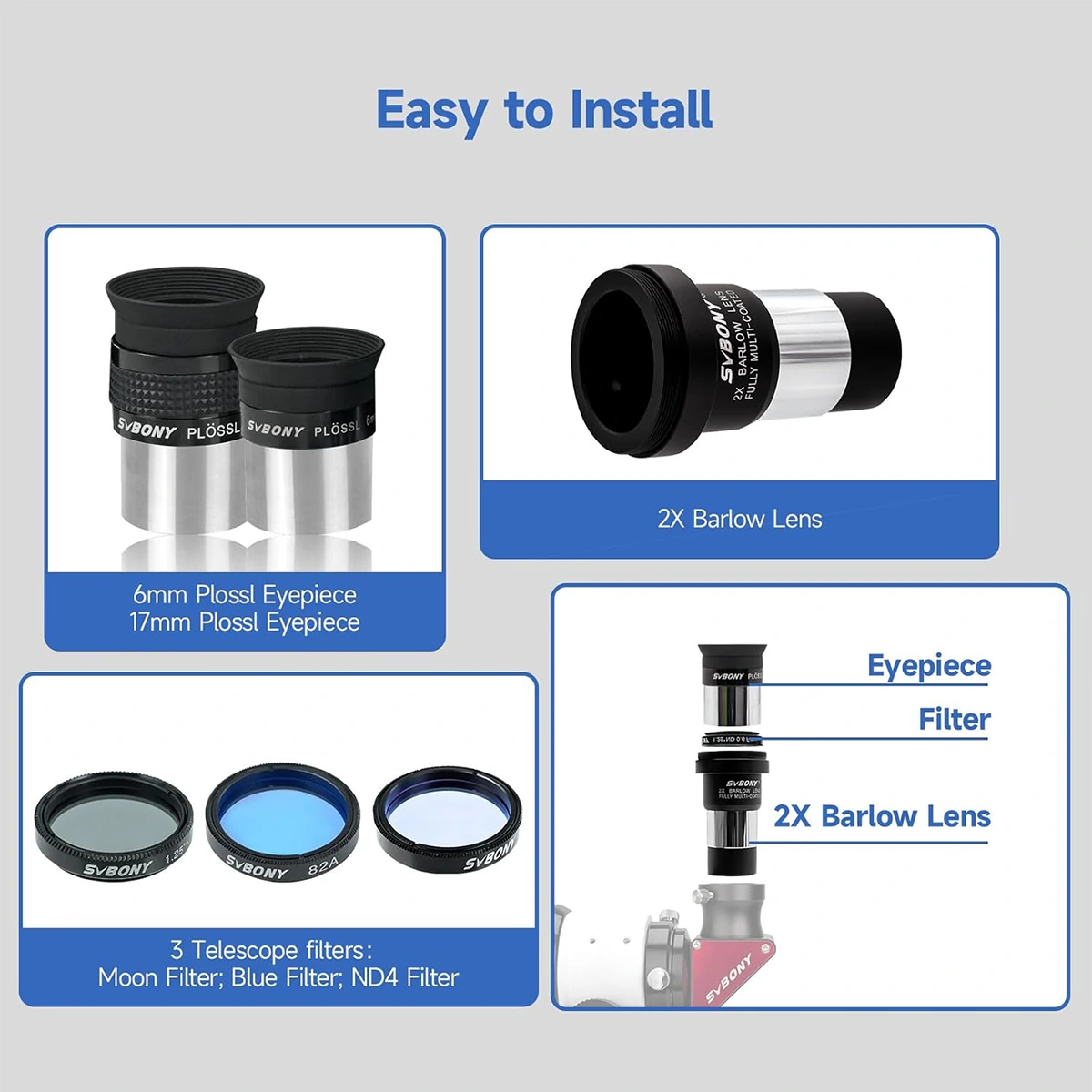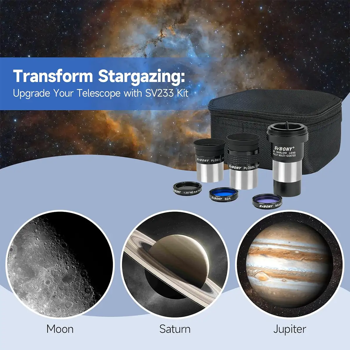 SV233 7-Piece Telescope Accessory Kit 6/17mm Super Plossl Eyepiece 2x Barlow Lens Moon Filter & ND4 Filter & 82A Color Filter w/ Portable Bag