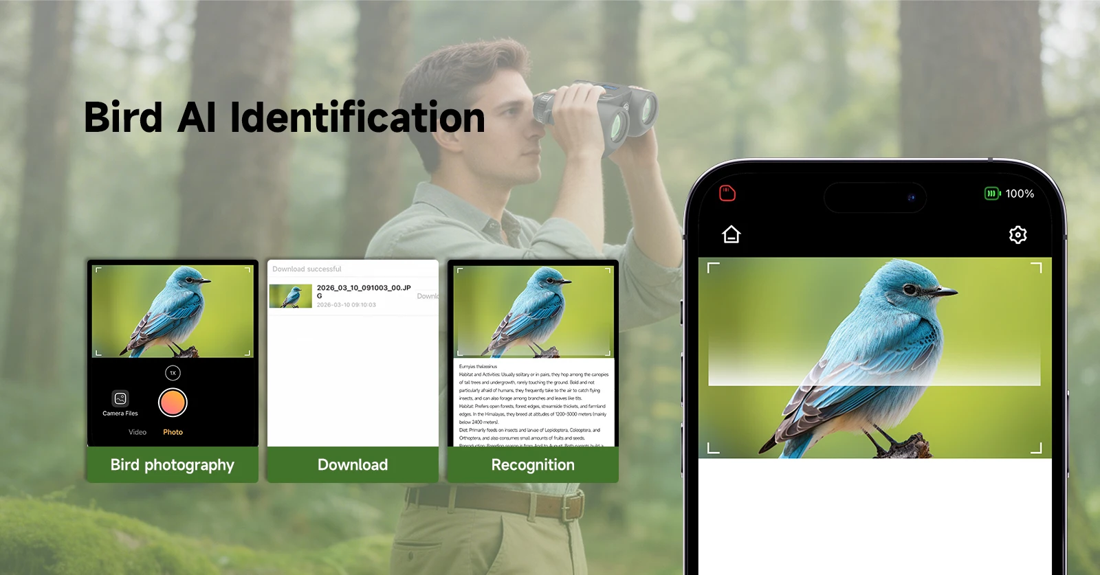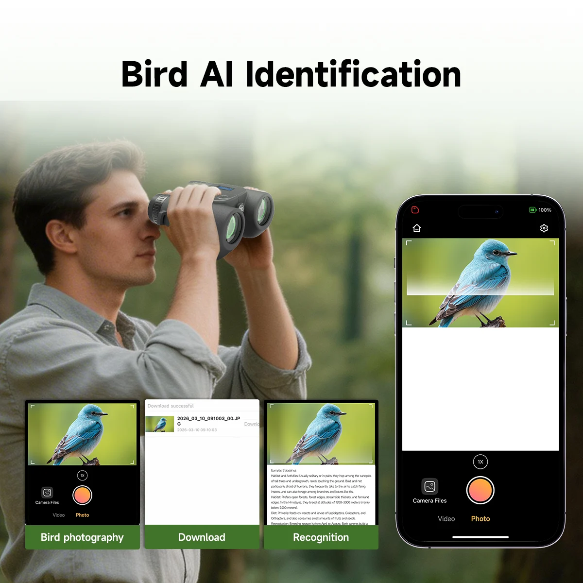 SA208 8x42 Integrated ED Binoculars with photos and videos (6MP) – for Bird Watching & Outdoor Observation