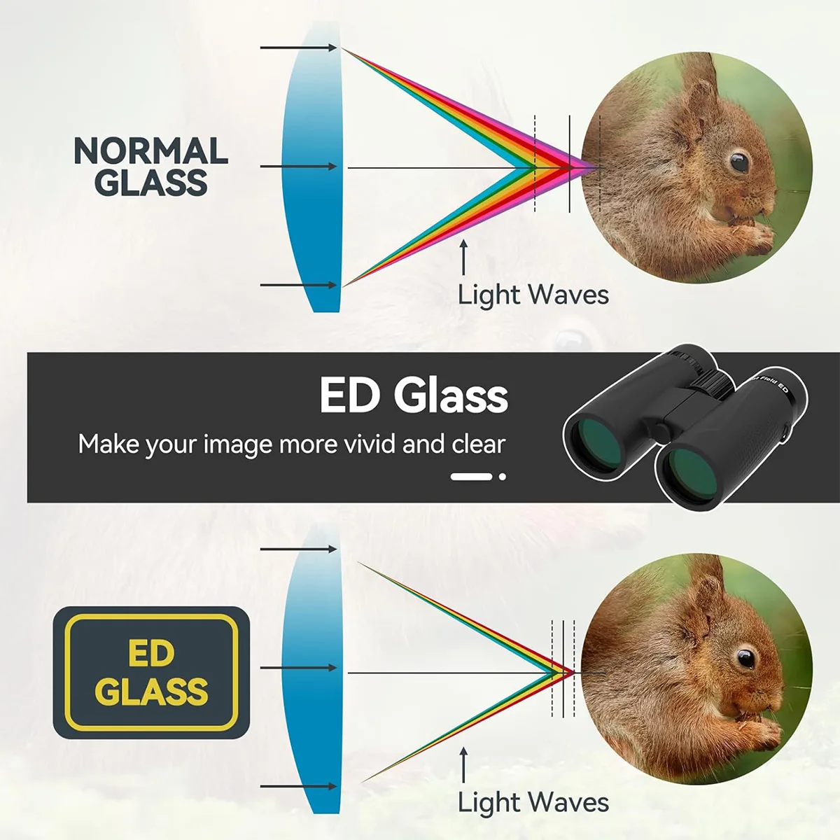 Dual ED objective lens (4 pieces/4 group) extra-low dispersion optical glass that significantly reduces chromatic aberration, presents clear images with excellent color correction, and enjoy lifelike colors and contrast.