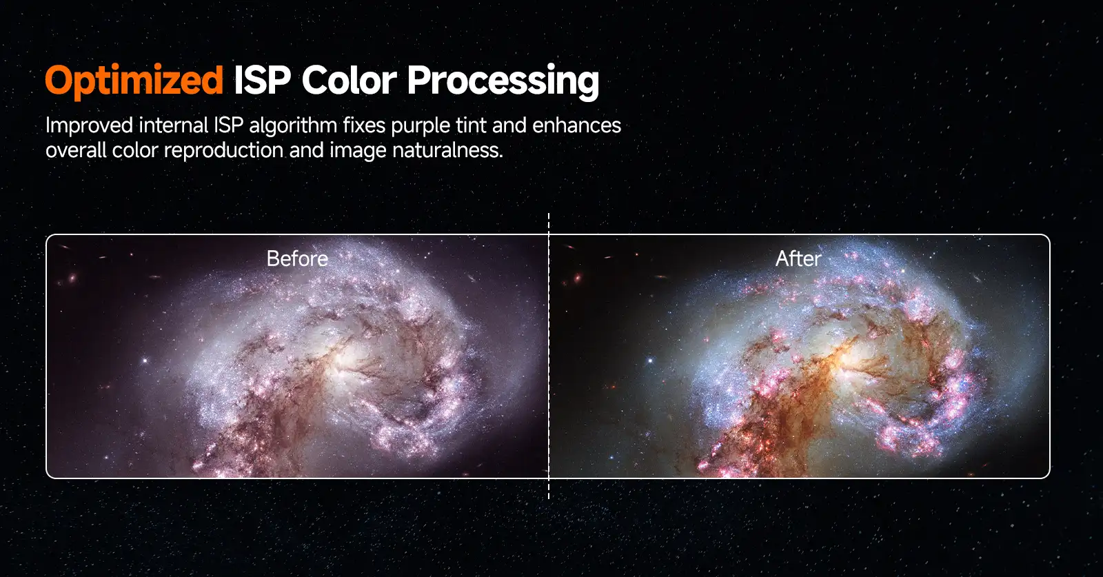 - Optimized ISP color processing: SVBONY SC311 WiFi Camera features an improved internal ISP algorithm that corrects purple tint and enhances overall color reproduction; delivering more natural and realistic celestial images