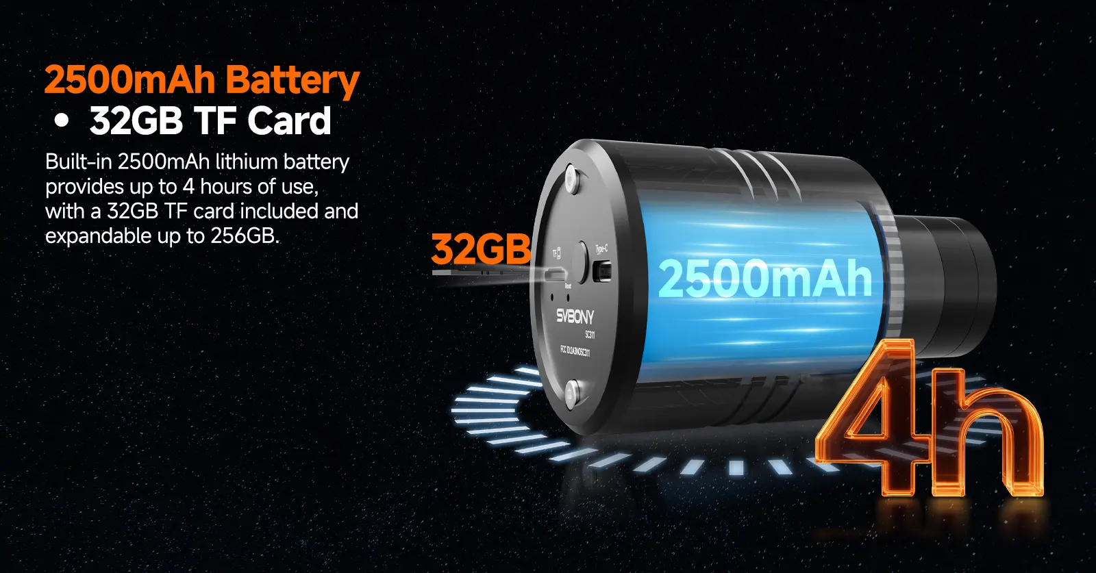 - Built-in Large-Capacity Battery & TF Card Support