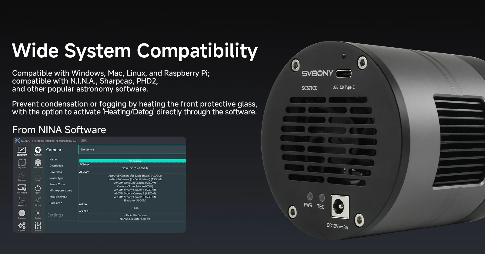 This driver enables ASCOM and NINA software to recognize and control your SVBONY SC571CC camera.
