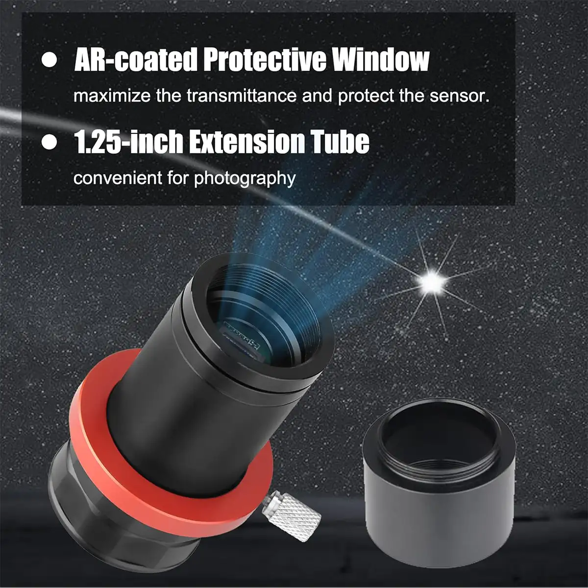 2. SV106 Guide Scope is designed for use with the guider CCD astronomy camera or eyepiece. Helical focuser collar will not rotate attached autoguiding devices during focus adjustments;
