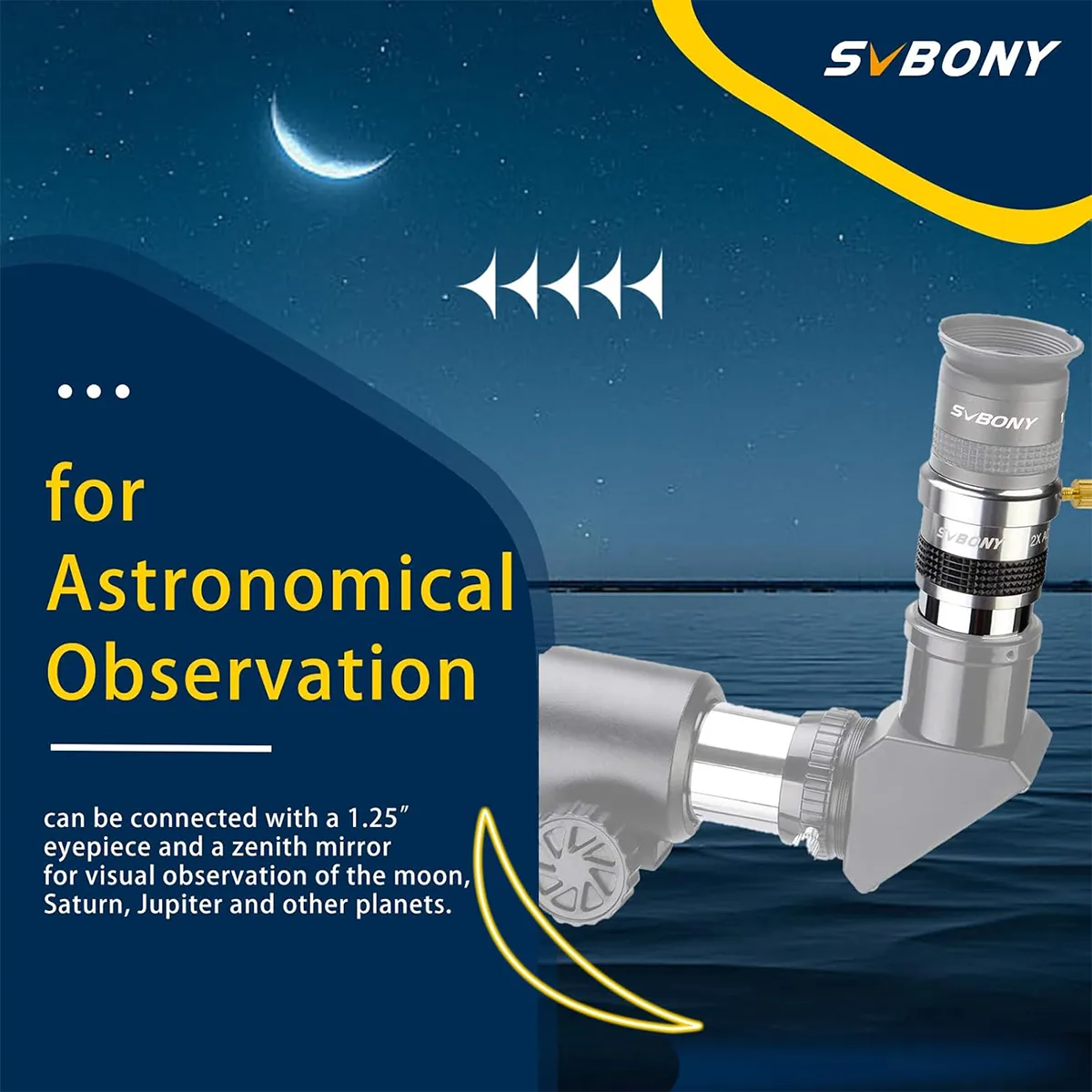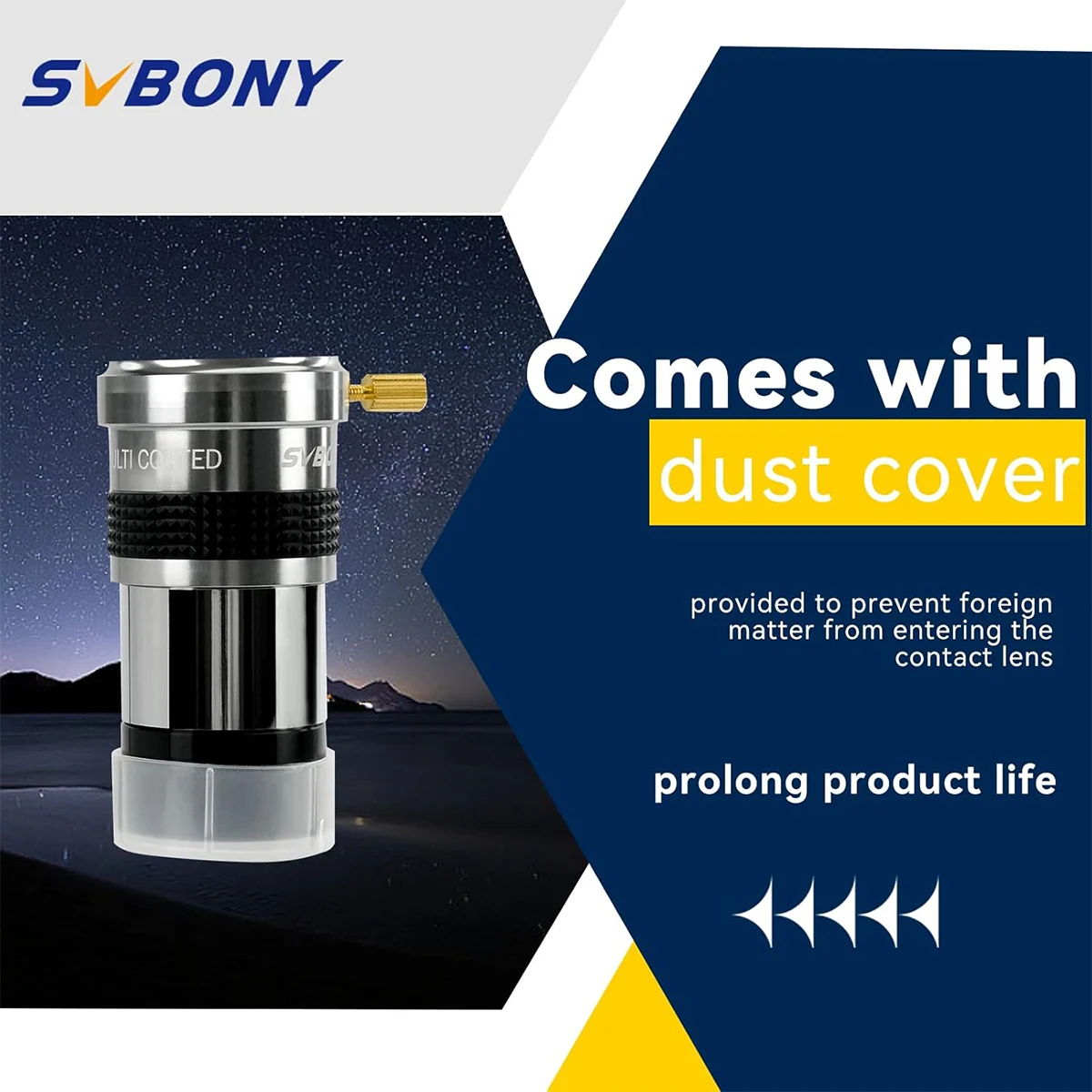 - Standard 1.25 inches;Quality SVBONY SV137 1.25-Inch 2x Barlow Lens doubles the magnification of any 1. 25" Eyepiece