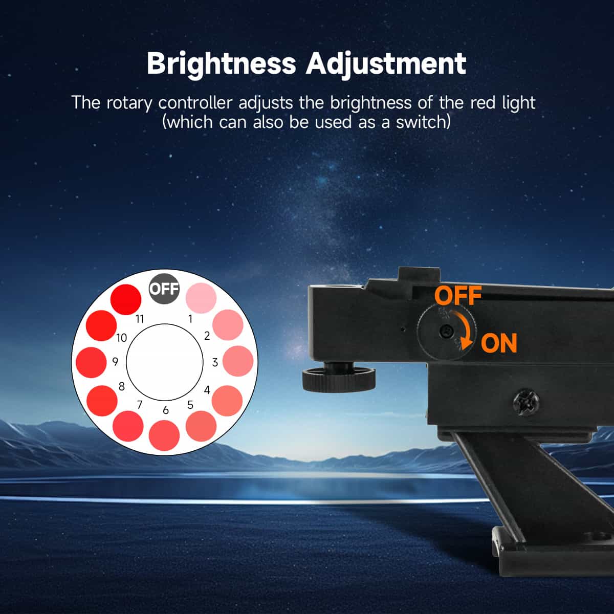 - Brightness Control: Single knob for power and multi-level brightness adjustment, adapting to diverse observation environments;