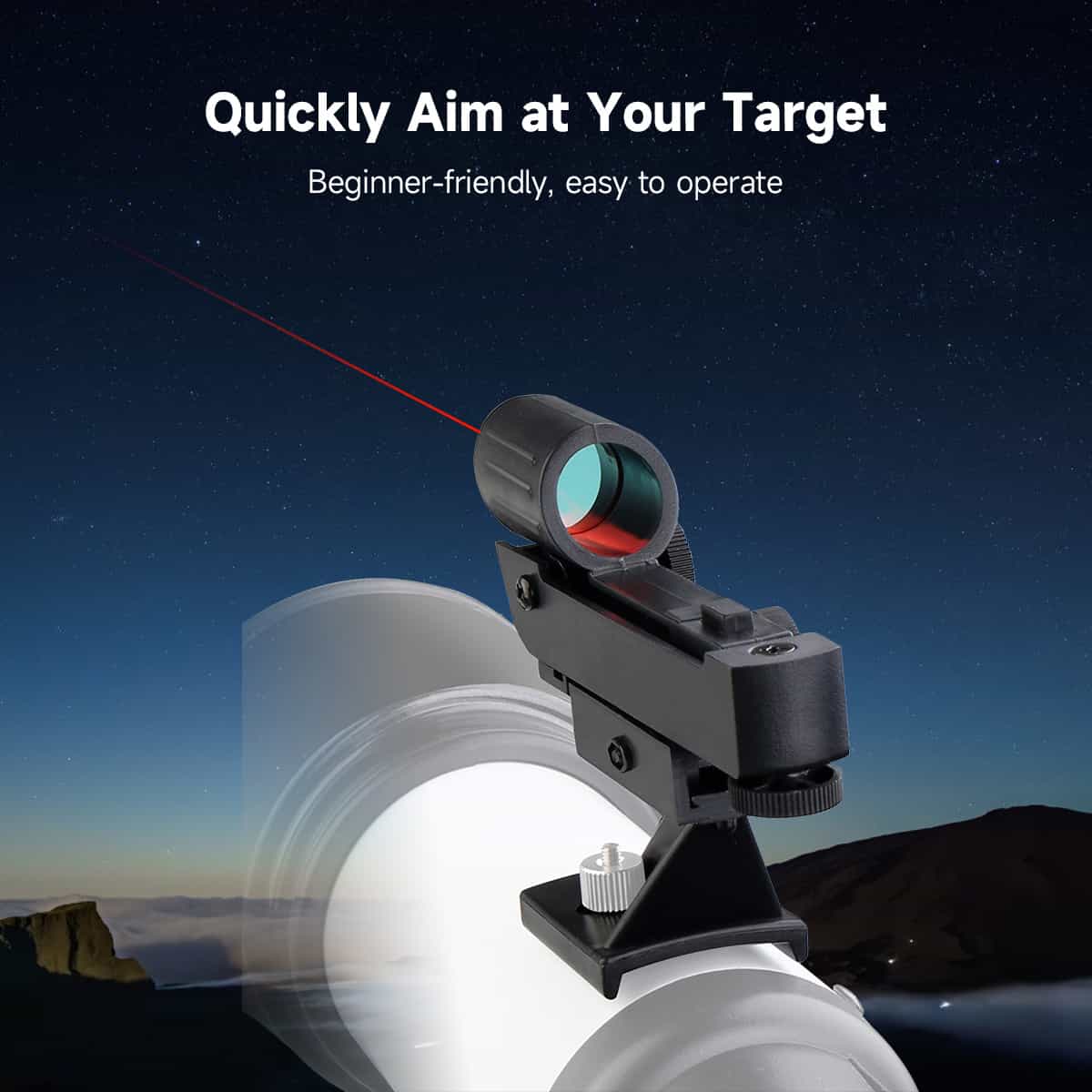 3. LED dot is projected onto a non-magnifying viewing window so you can aim the main telescope quickly and easily
