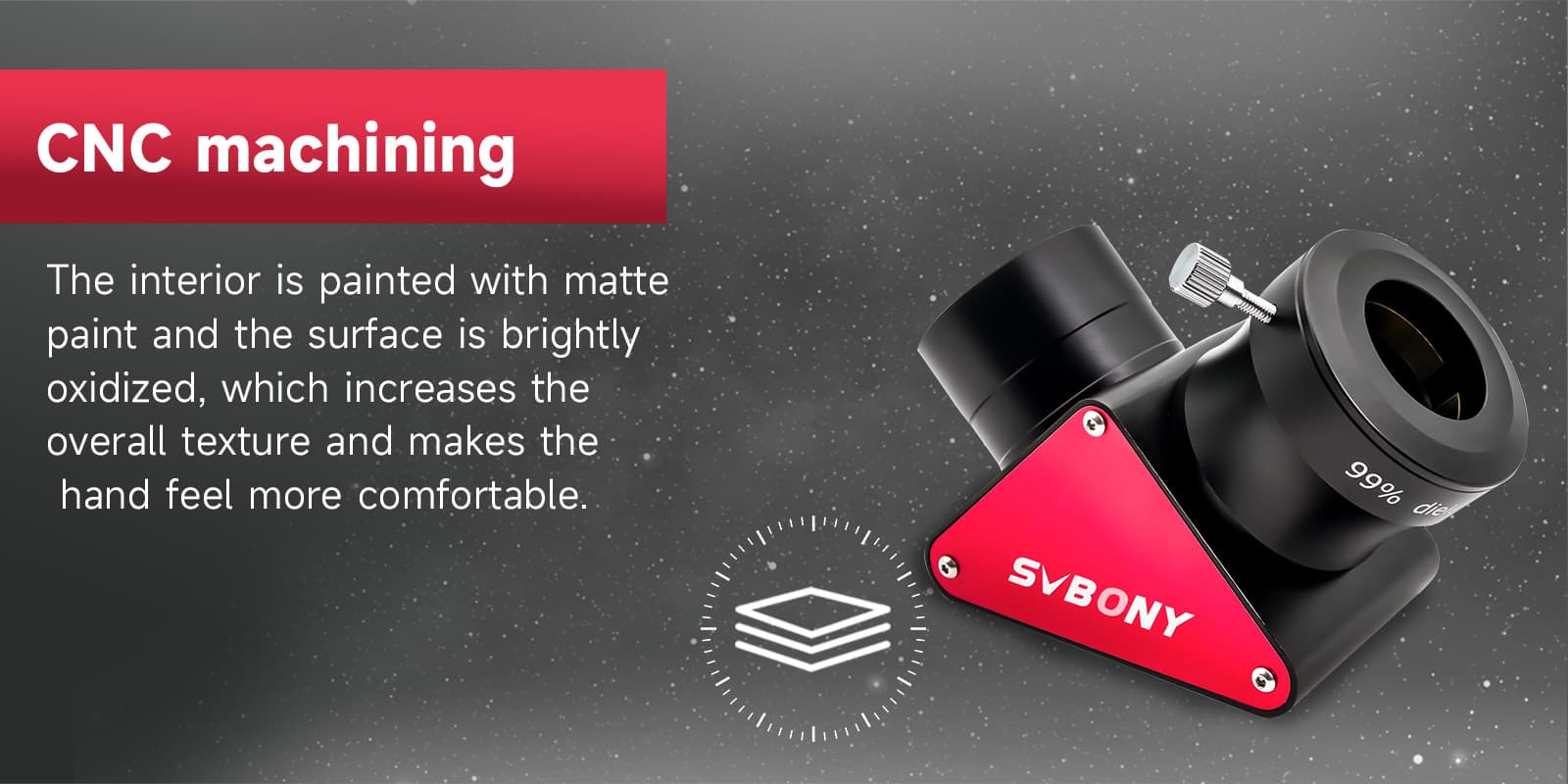 Elevate your stargazing experience with the SV188P diagonal featuring dielectric coatings that provides over 99% reflectivity, significantly reducing light loss for brighter images.
