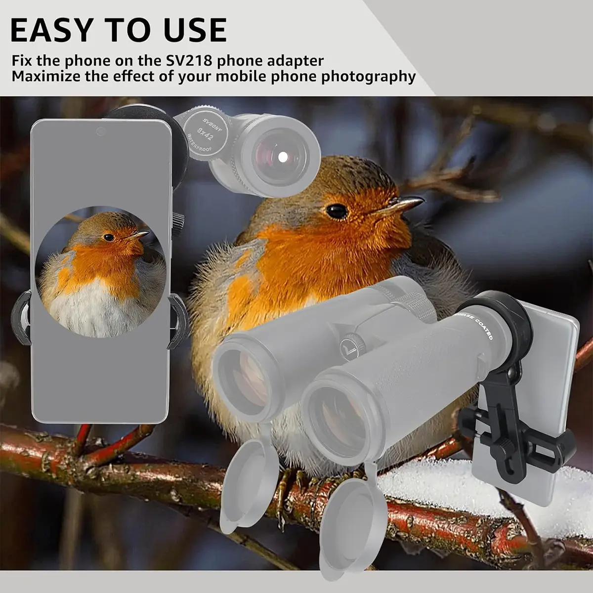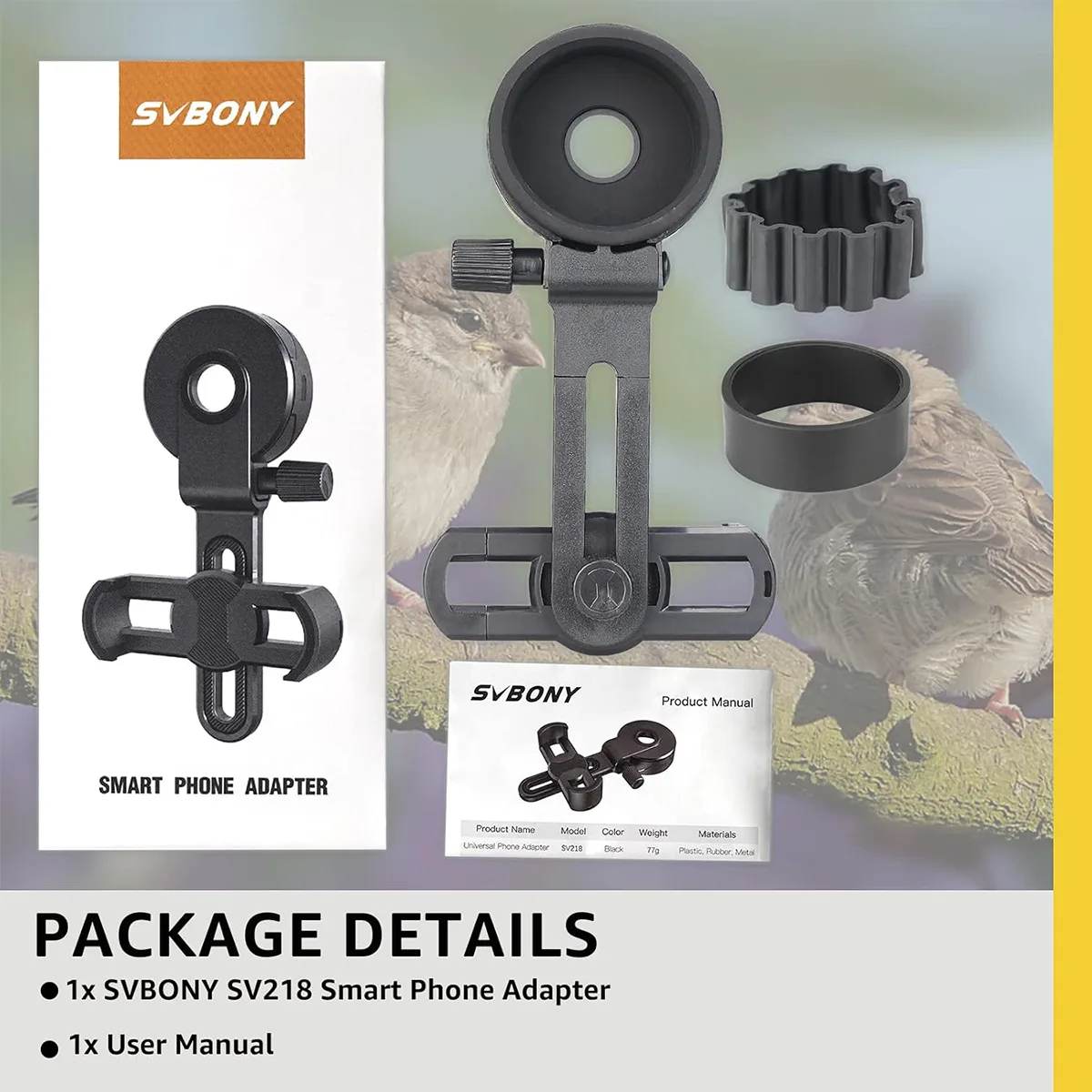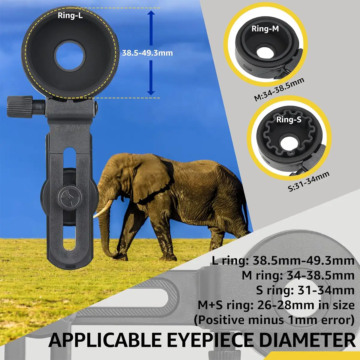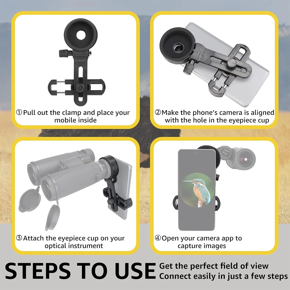 Works with binoculars, monoculars, spotting scopes, microscopes, and astronomical telescopes.