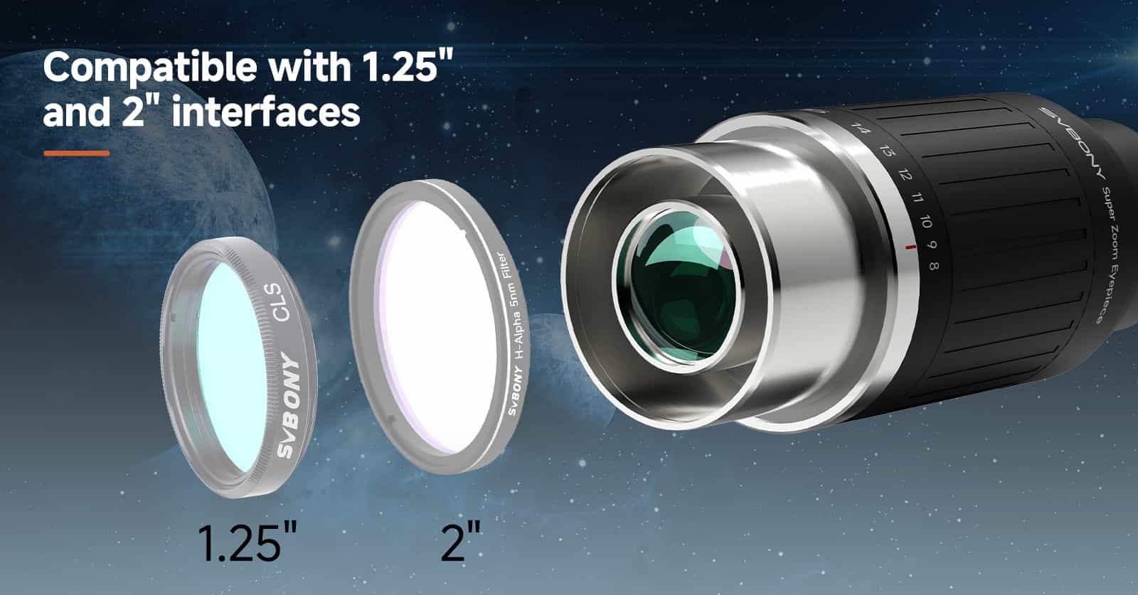 Equipped with 1.25" and 2" interfaces. It is suitable for multiple telescopes.