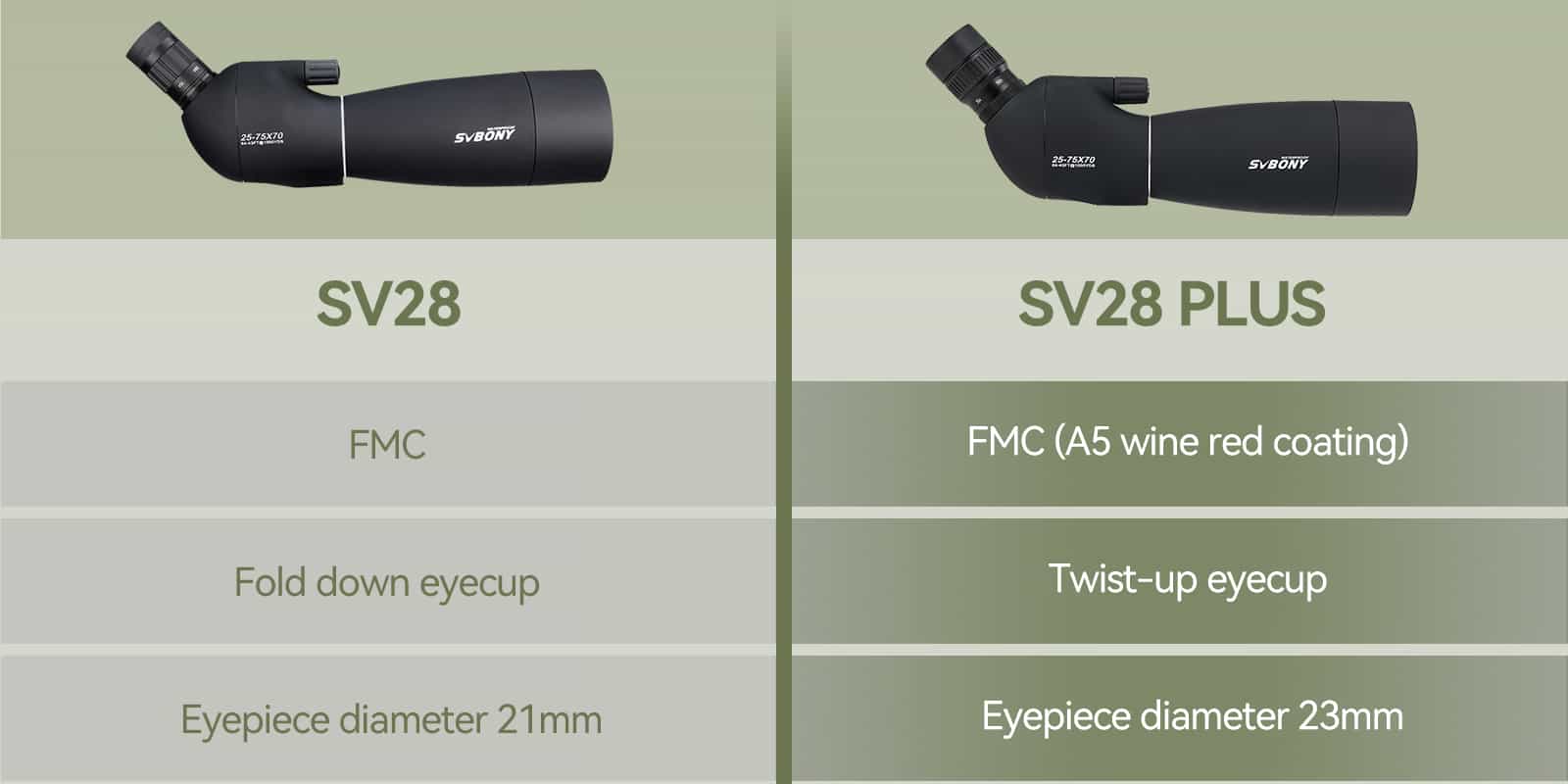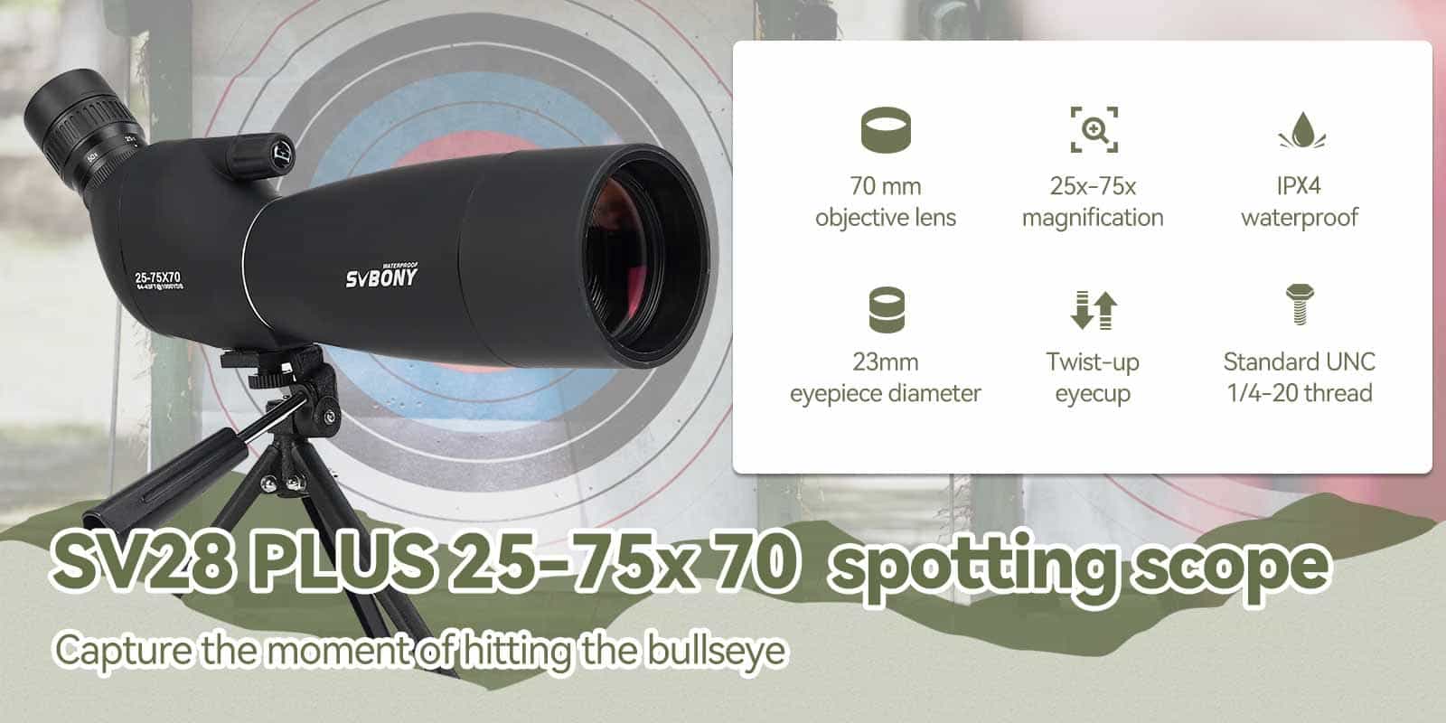 Note: The SV28 Plus spotting scope 25-75x70mm has desk tripod in the package.