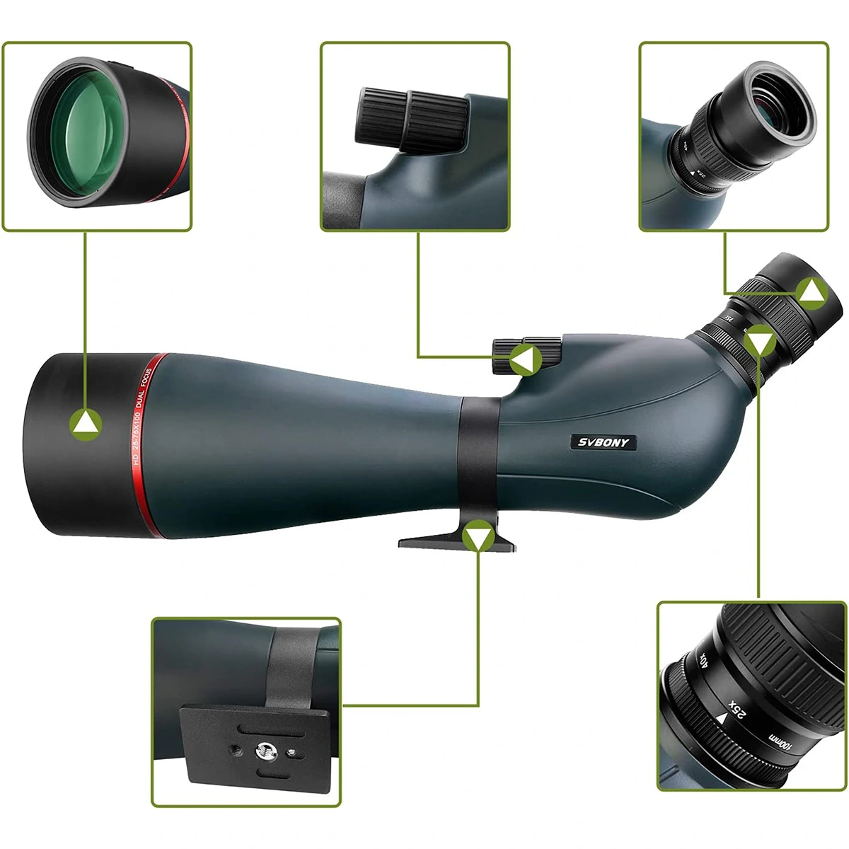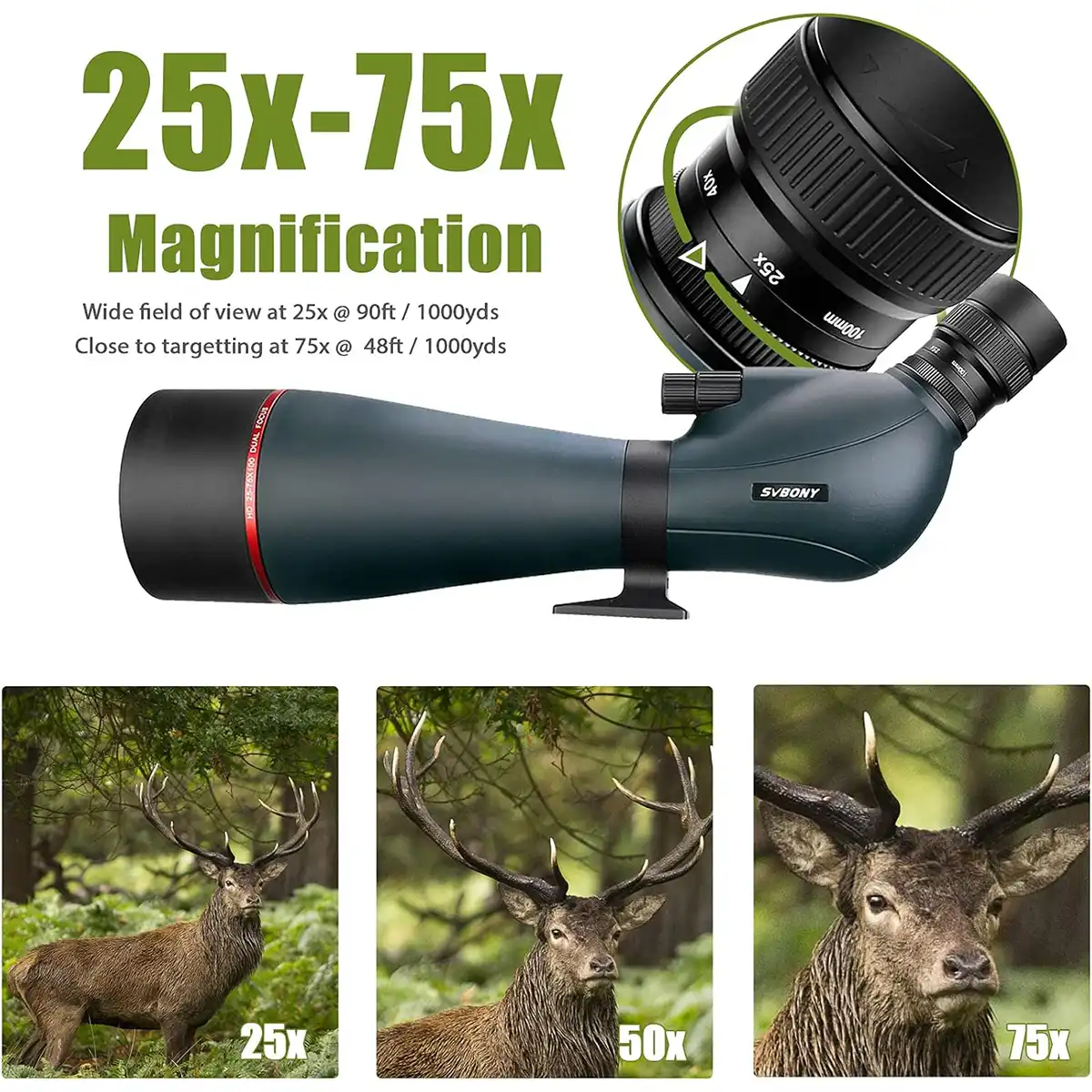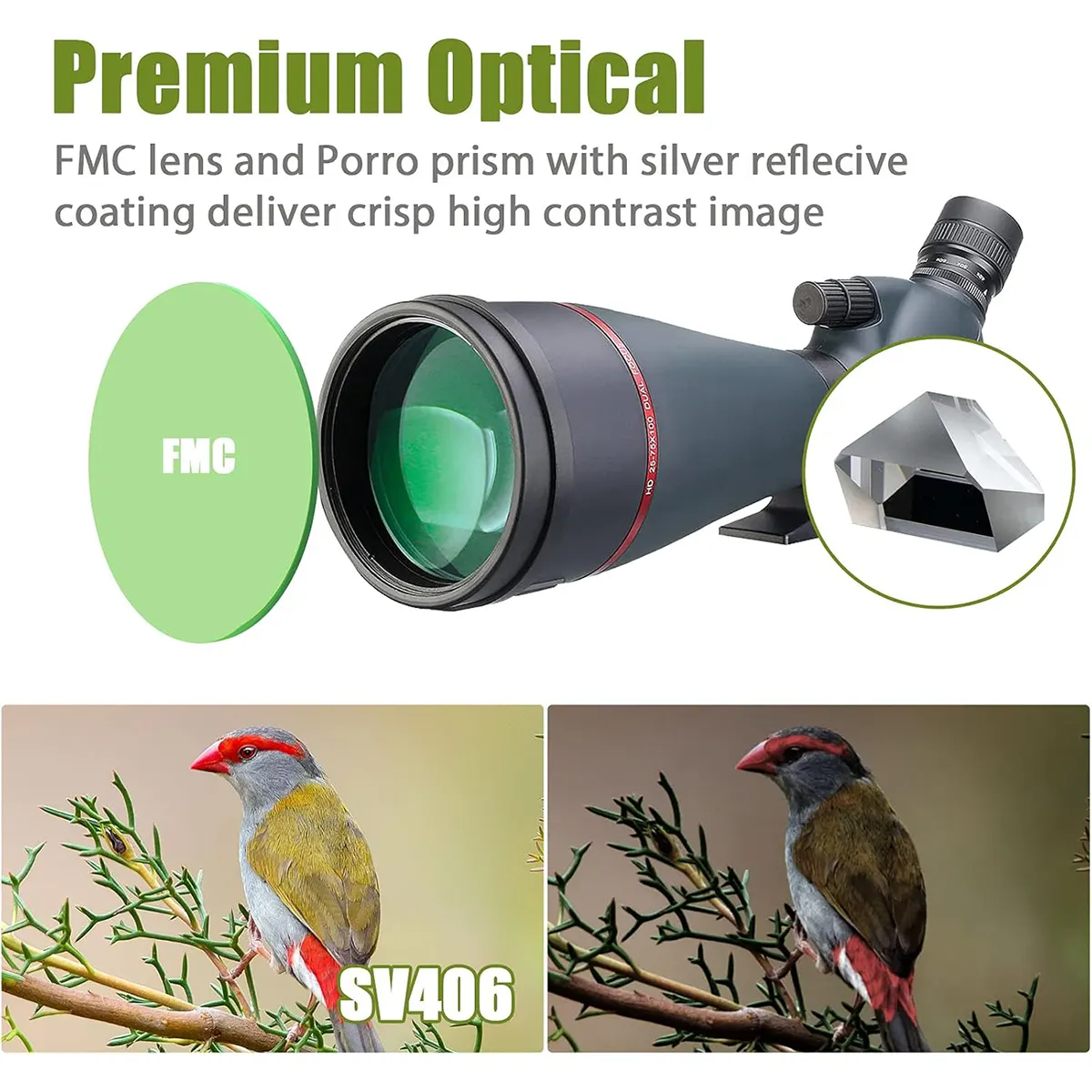 SV406 25-75x100 HD Spotting Scope FMC Dual Focus Long Range for Bird Watching Wildlife Target Shooting Hunting Scenery