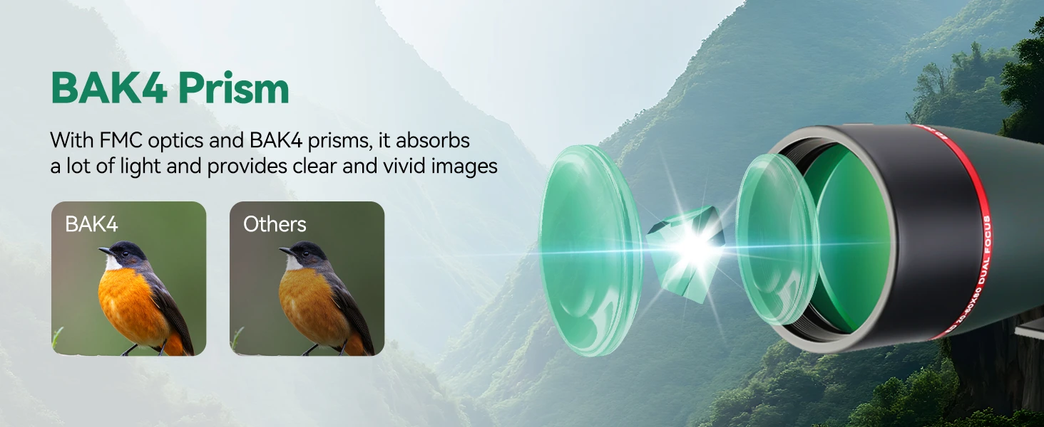 - 5. BAK4 prism and FMC (Fully Multi-Coated) optics, increasing light transmission through the optical path to deliver crisp, high contrast images