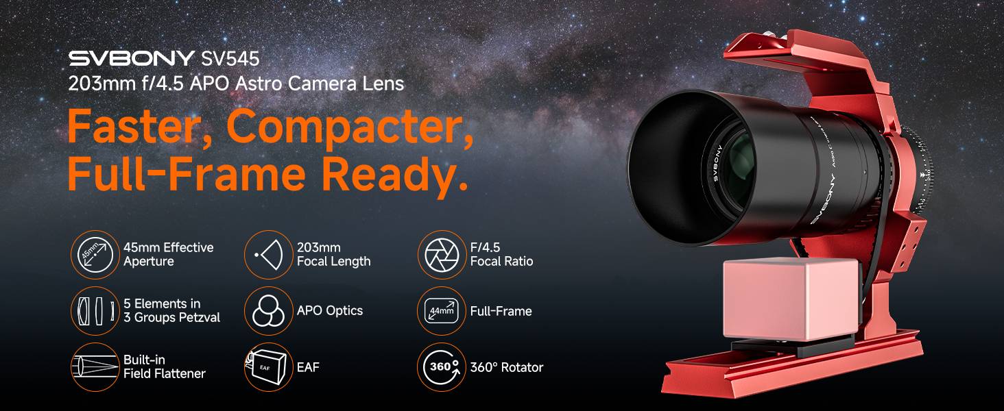 Petzval Refractor 45mm f/4.5 203mm FMC Telescope w/Helical Focuser, 360º Rotator & M48 Thread| SVBONY SV545