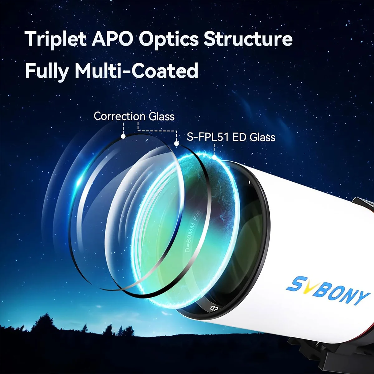 SVBONY SV550 APO Triplet Refractor 80mm F6 Telescope OTA For Deep Sky Astrophotography and Visual Observation