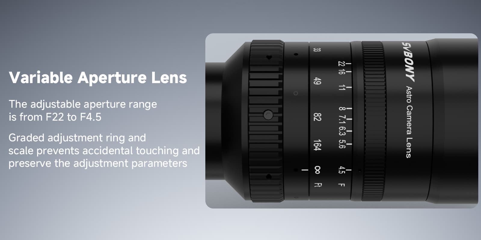 With a 44mm full-frame design, the SV555 ensures full compatibility with DSLR cameras, allowing you to capture wide, clear images without issues of aperture blockage, even at high resolutions.