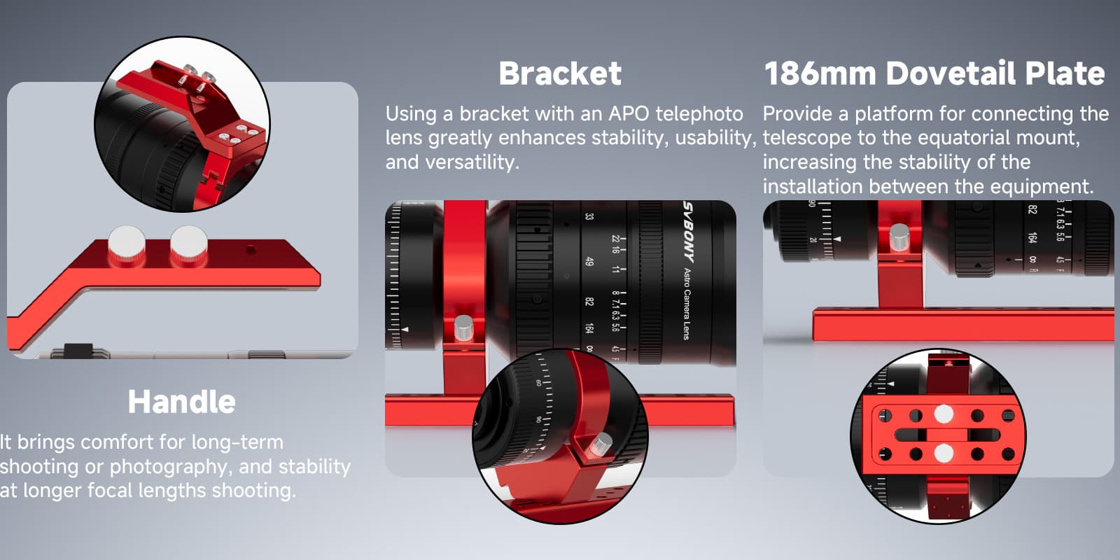 The SV555 DSLR camera lens is designed specifically for astrophotography, offering exceptional clarity and high resolution, perfect for capturing detailed images of celestial objects.