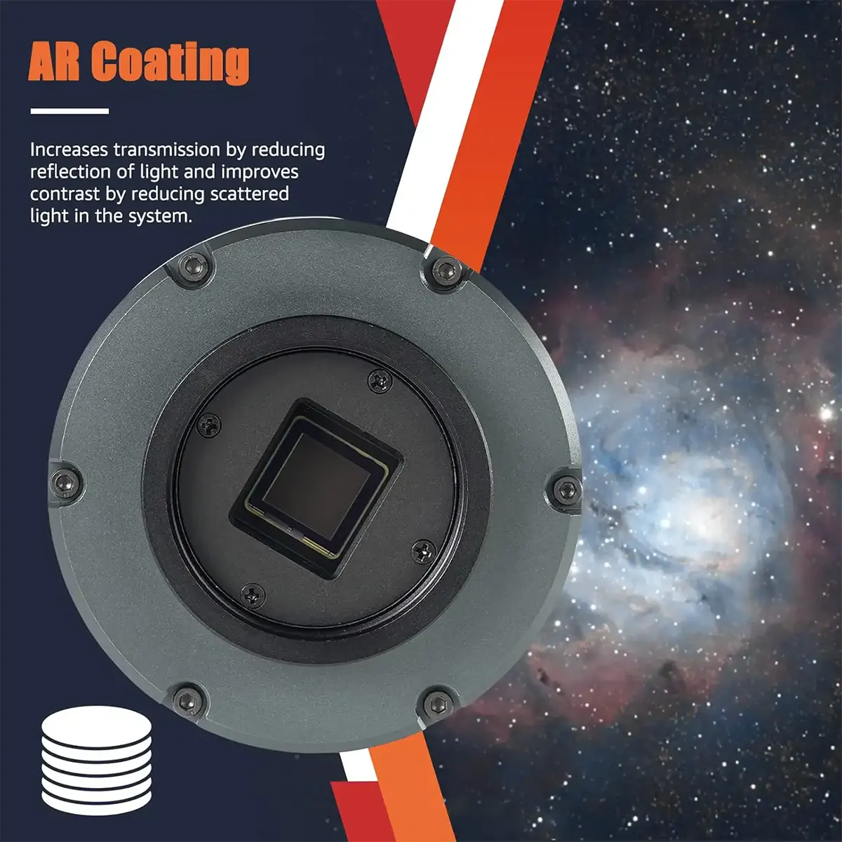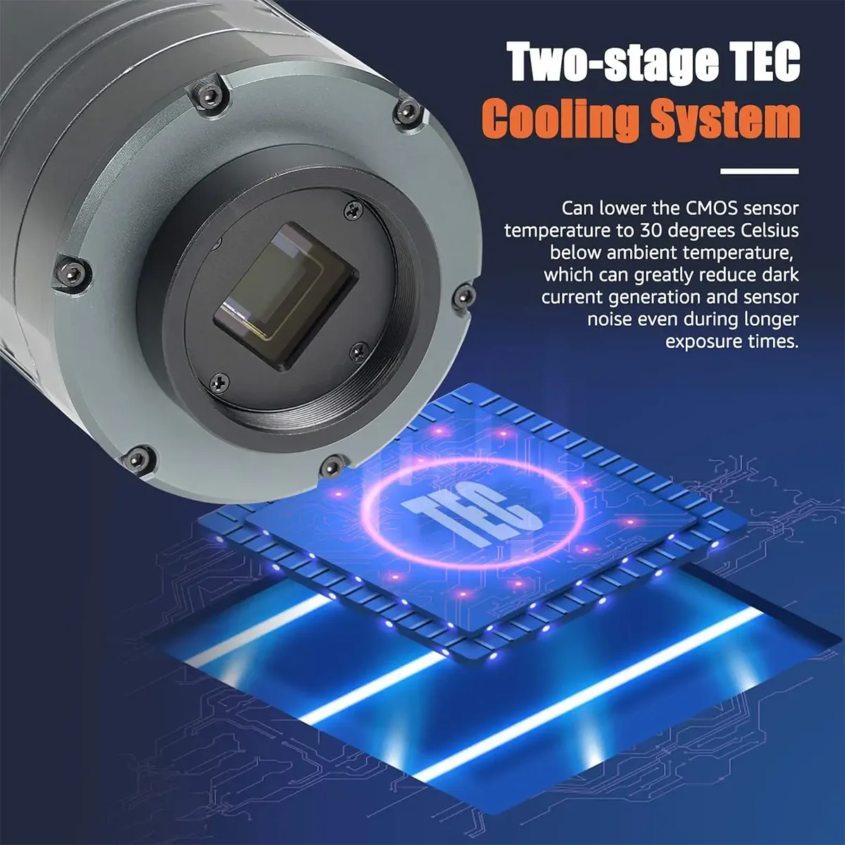 With read-out noise as low as 1.0e, this camera ensures clear, low-noise images, even during long-exposure shots of deep-sky objects and faint celestial features.