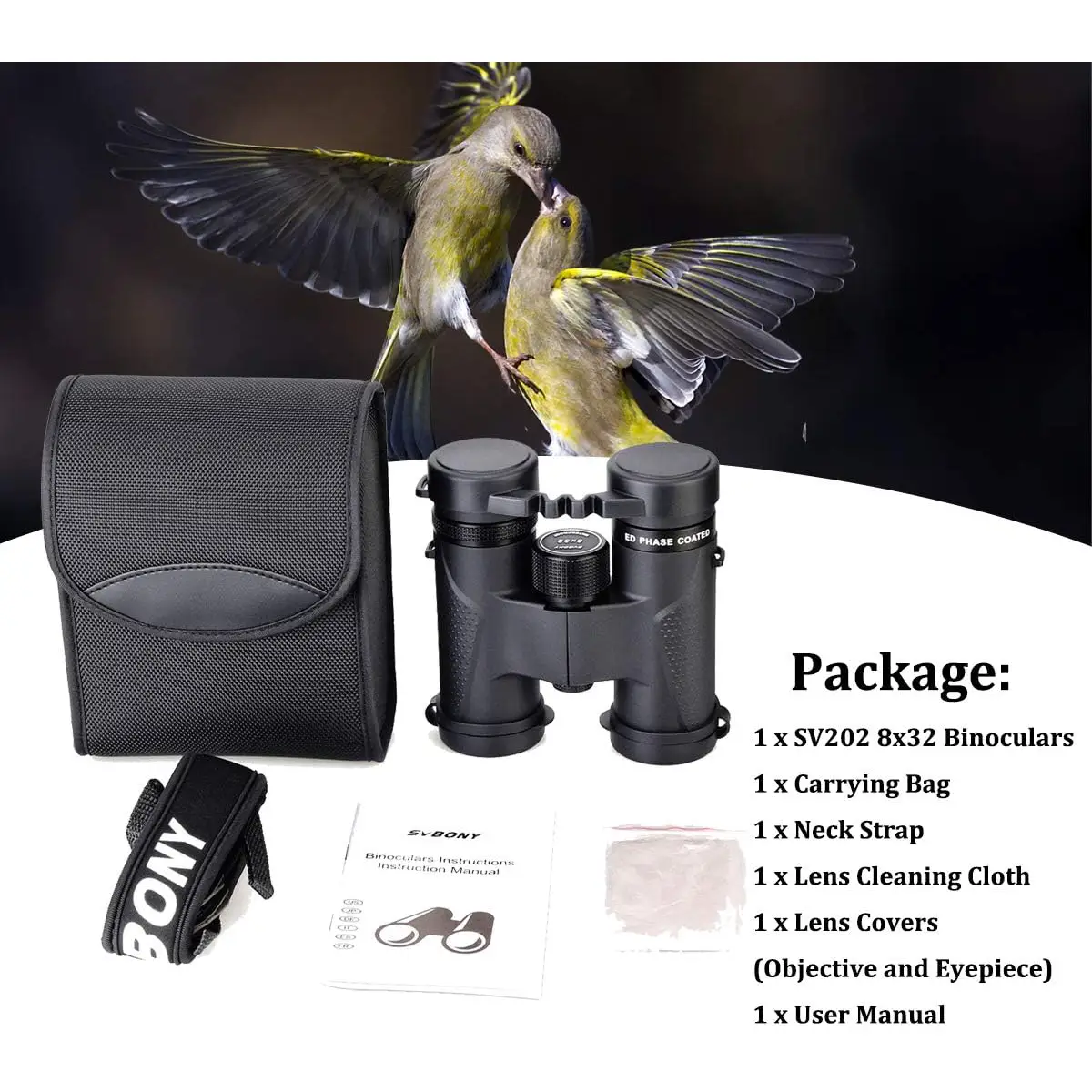 SV202 8x32ED Binoculars Extra-Low Dispersion Bak4 Waterproof Fogproof for Bird Watching