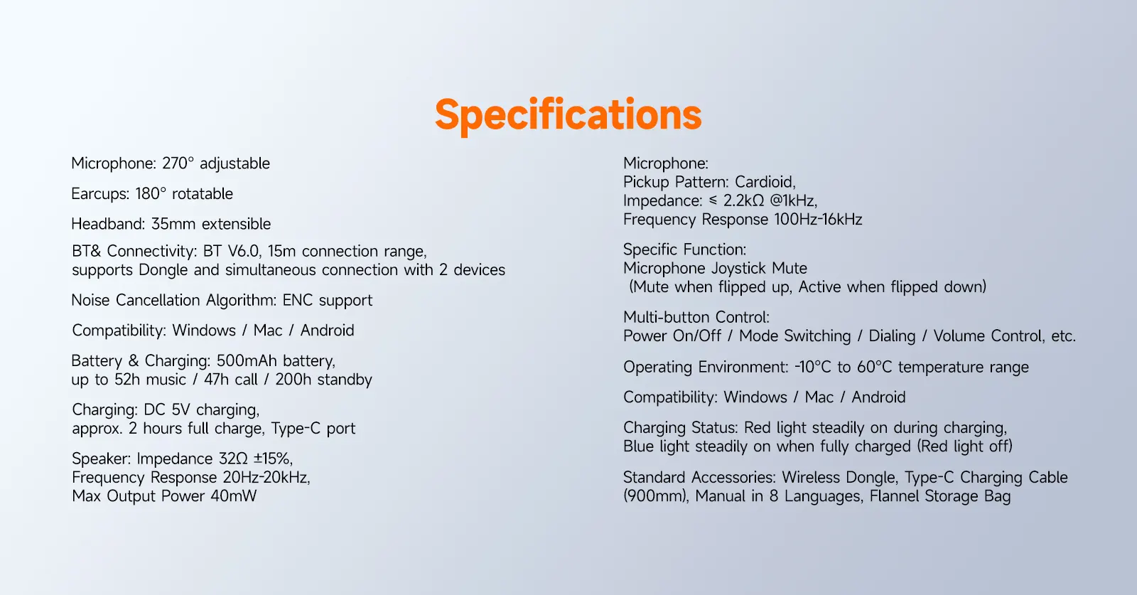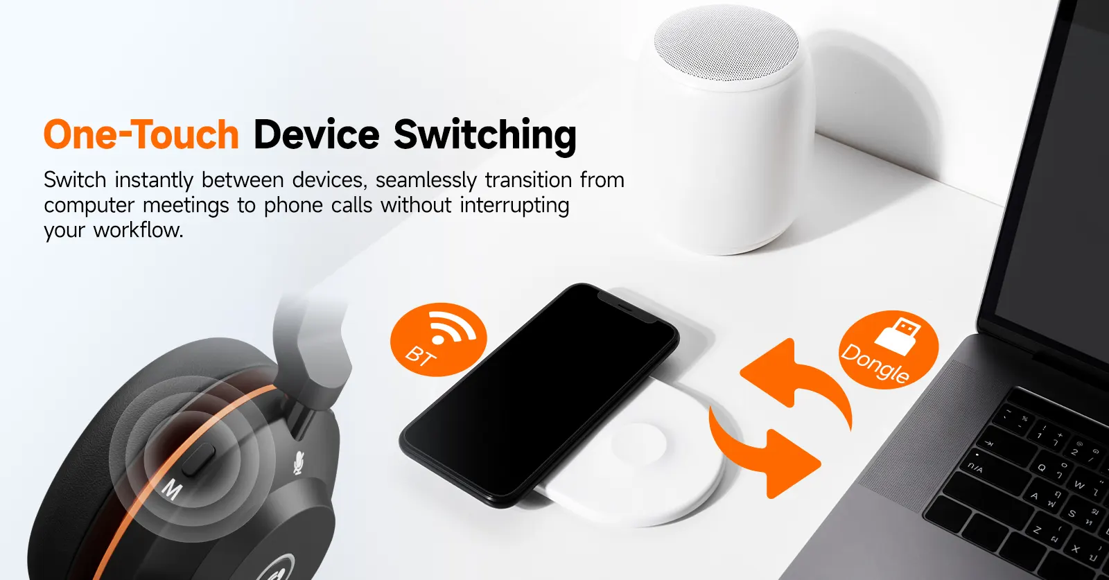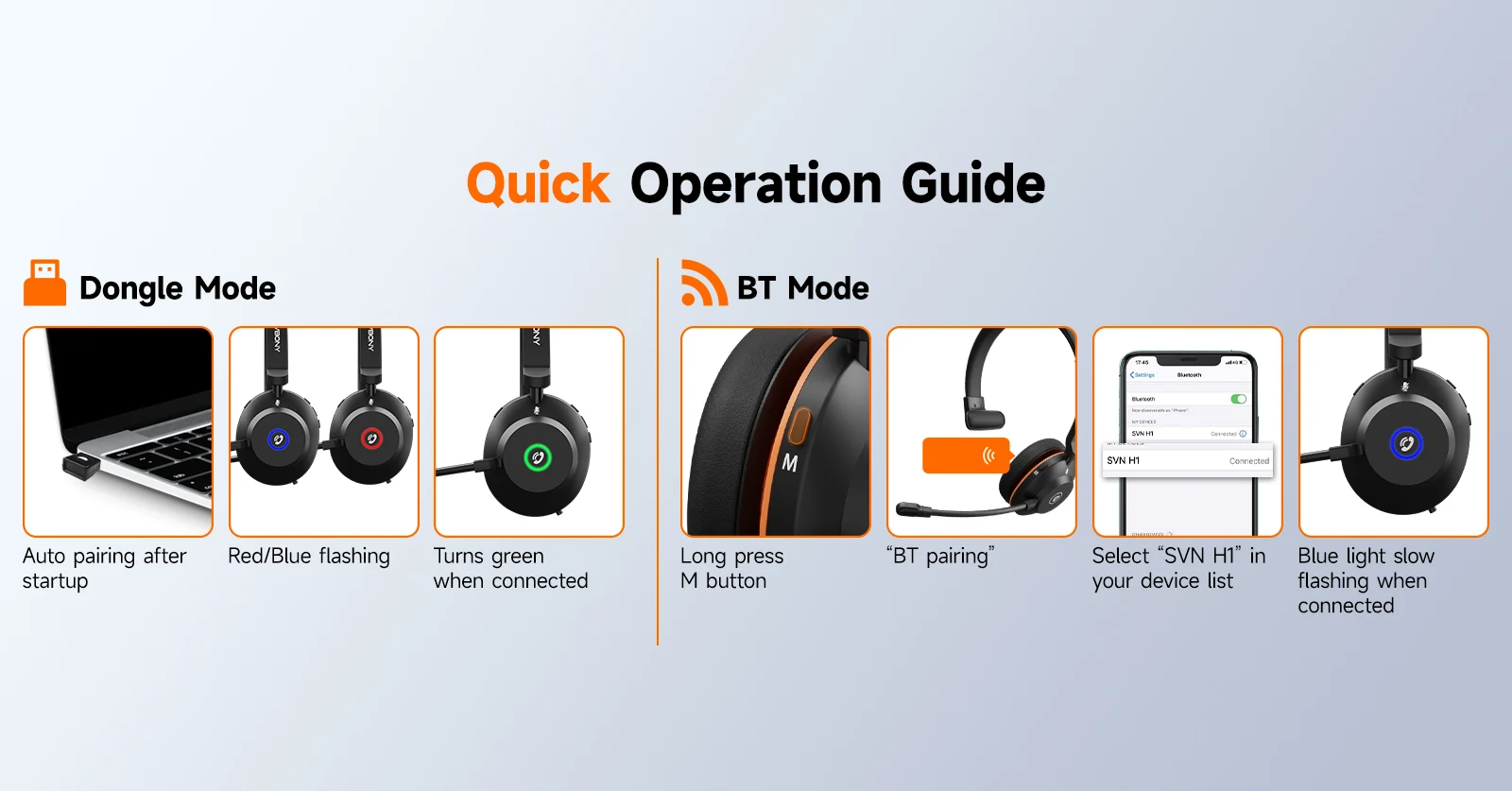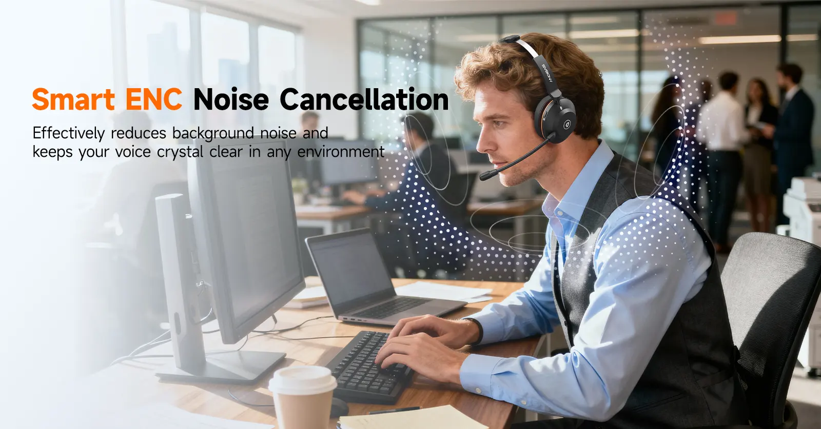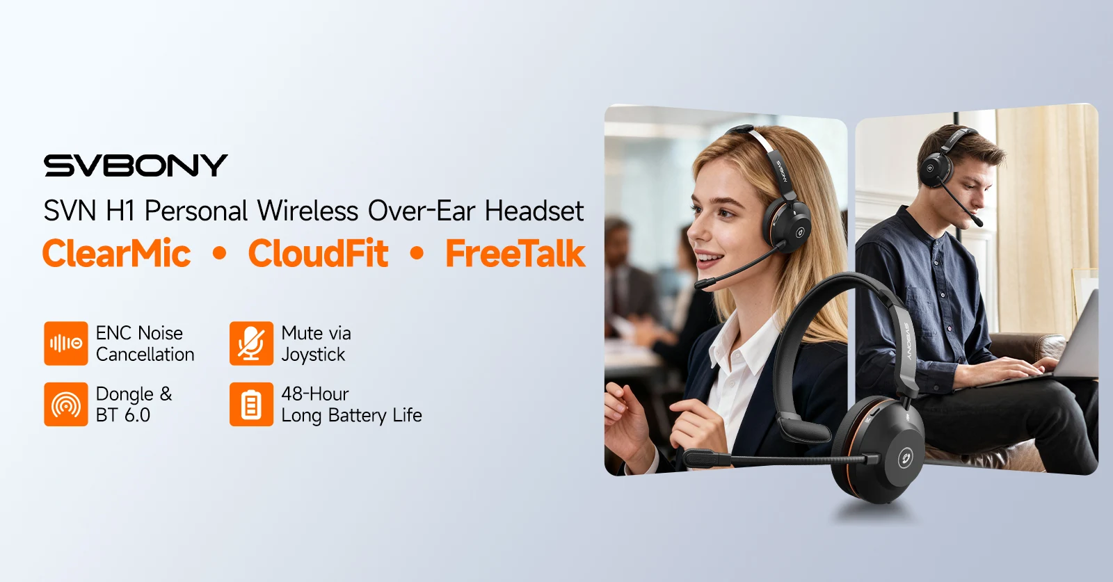 Svbony SVN H1 Wireless Office Headset with ENC Noise Cancelling & USB Adapter