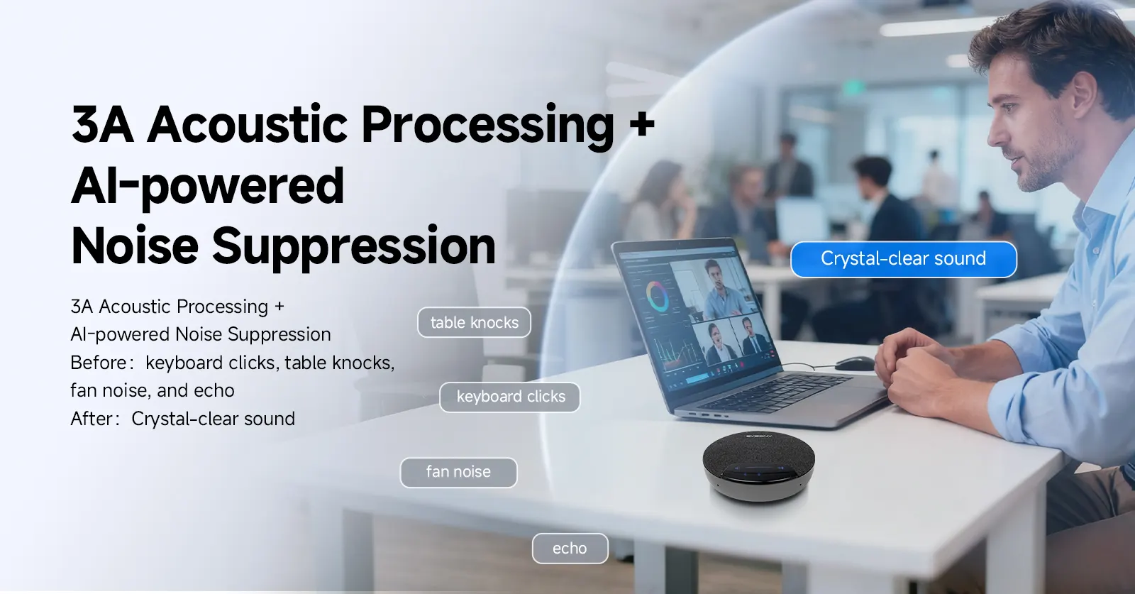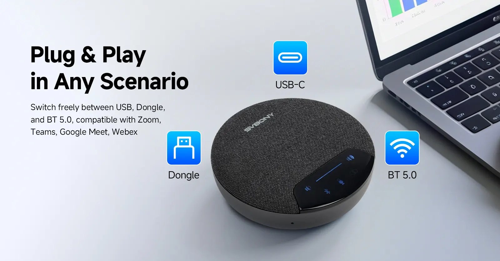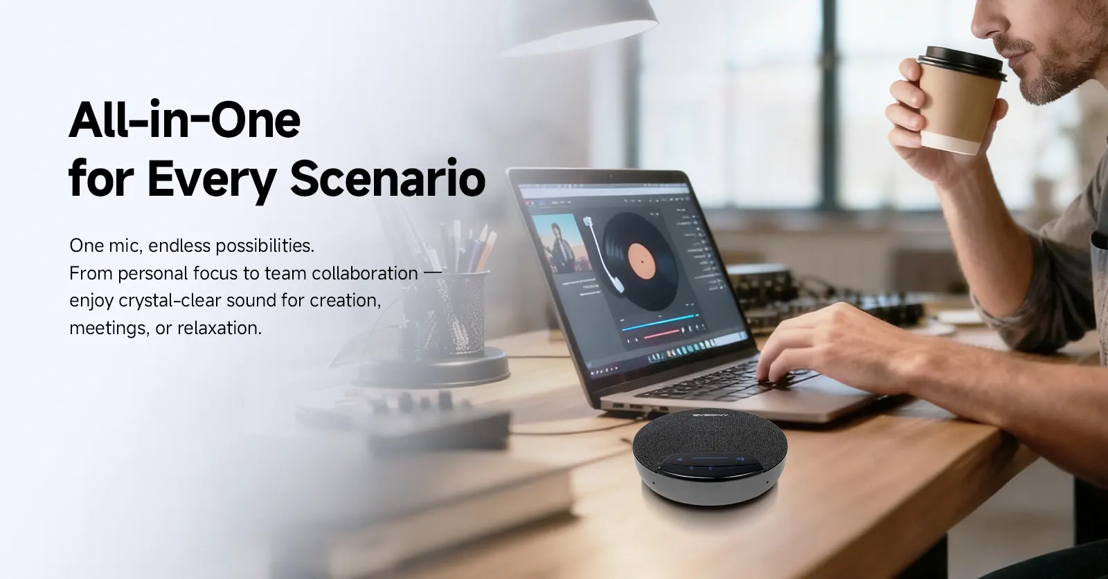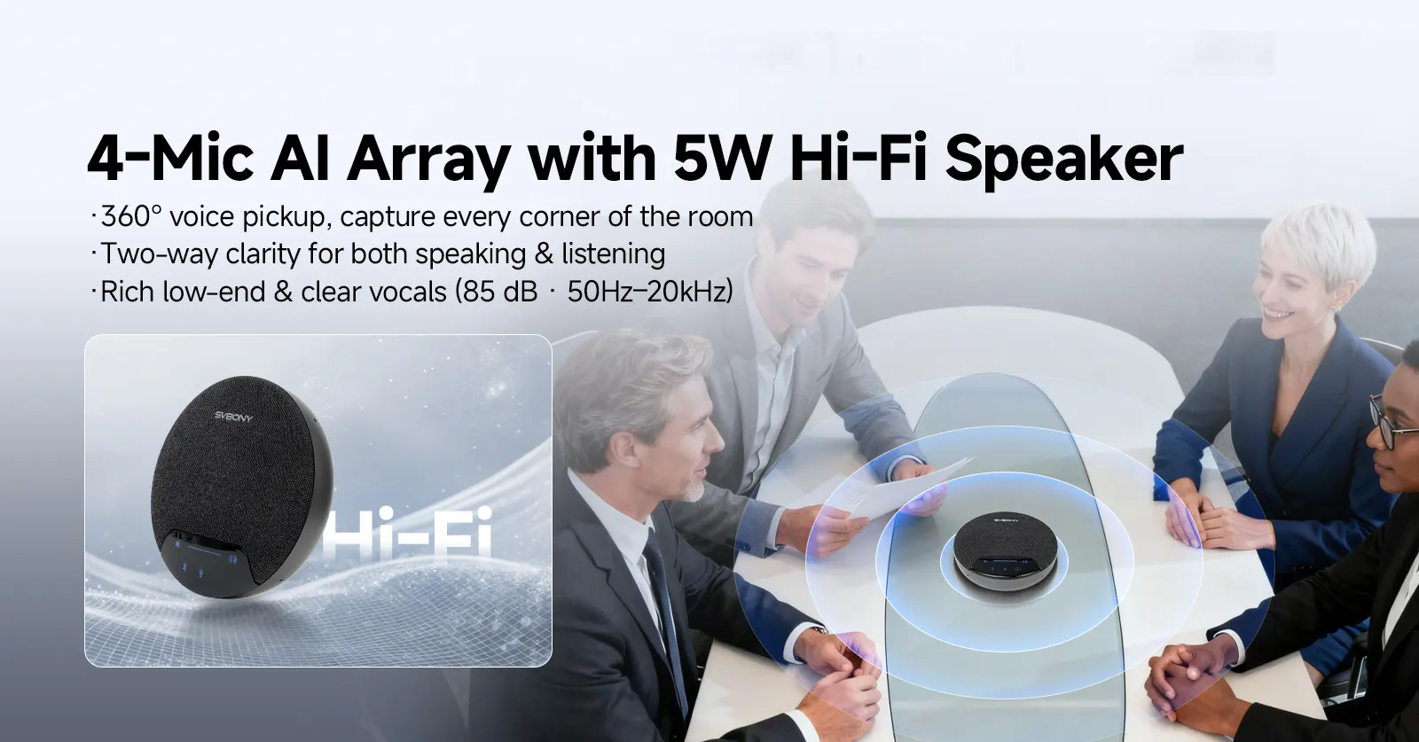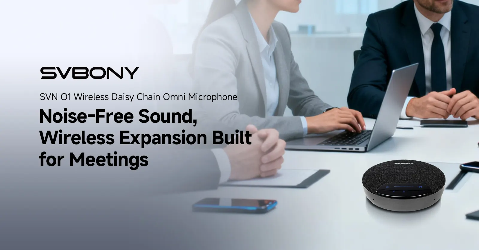 SVBONY SVN O1: Wireless Daisy-Chain Conference Mic with AI Noise Reduction, 360° Pickup