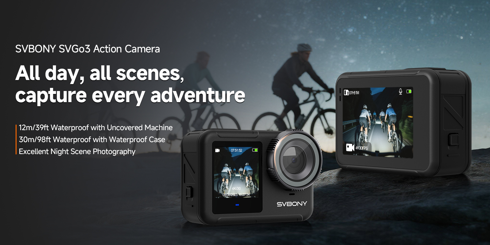 SVGO3 4K Waterproof Action Camera with Magnetic Quick Release ,Low-light Shooting, for Surfing, Diving, and Adventures